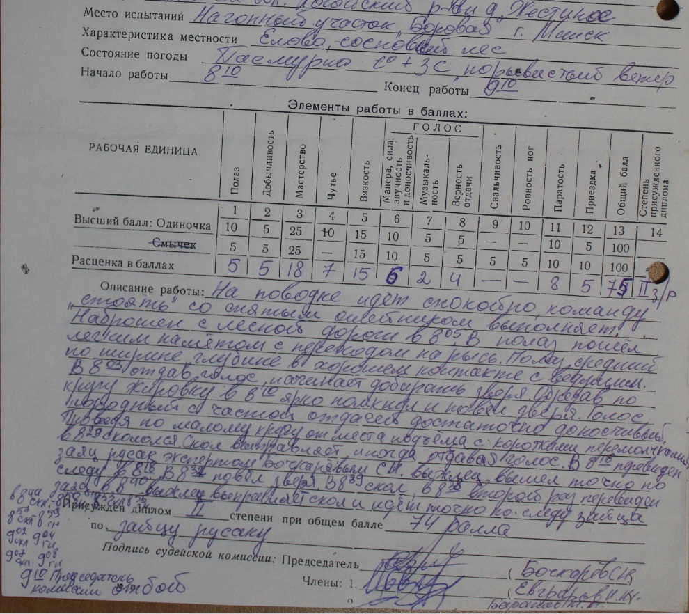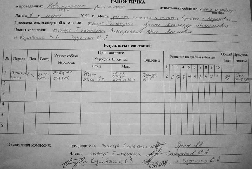 2. 14-16.11.2014 «Борисовская РОС» РГОО «БООР» XXIII республиканские состязания гончих. III место в индивидуальном зачете – III ст. зр, 65 баллов.