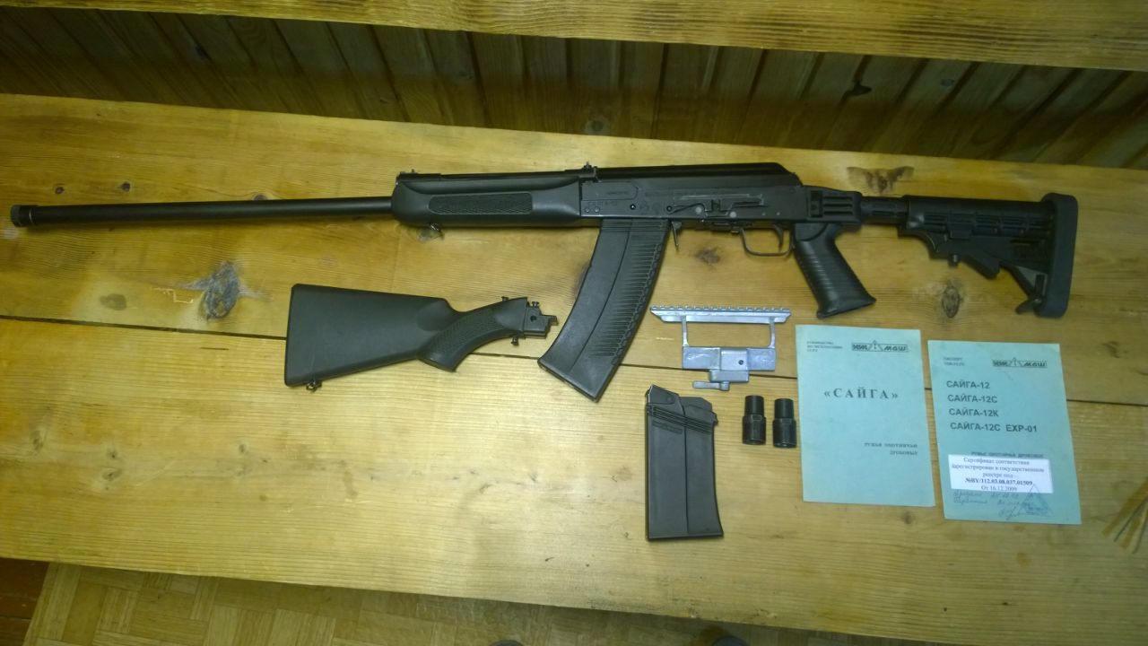 В продаже Сайга 12 с длиной ствола 680 мм и тремя дульными насадками( 0,05,1),год выпуска 2009 уже с затворной задержкой(не автоматическая),так же в комплекте кронштейн на вивер и магазин на 5 и 8 патронов. Состояние оружия как с магазина. По ценообразованию отдельно докупалось- крон 100 уе(лучше не видел),приклад 140 уе,магазин на 8 патронов 40 уе. По нашим нынешним временам цену вижу в 700 рубликов нашими за все,что на фото. Звонить пожалуйста по Тел +375295715452 Виктор.