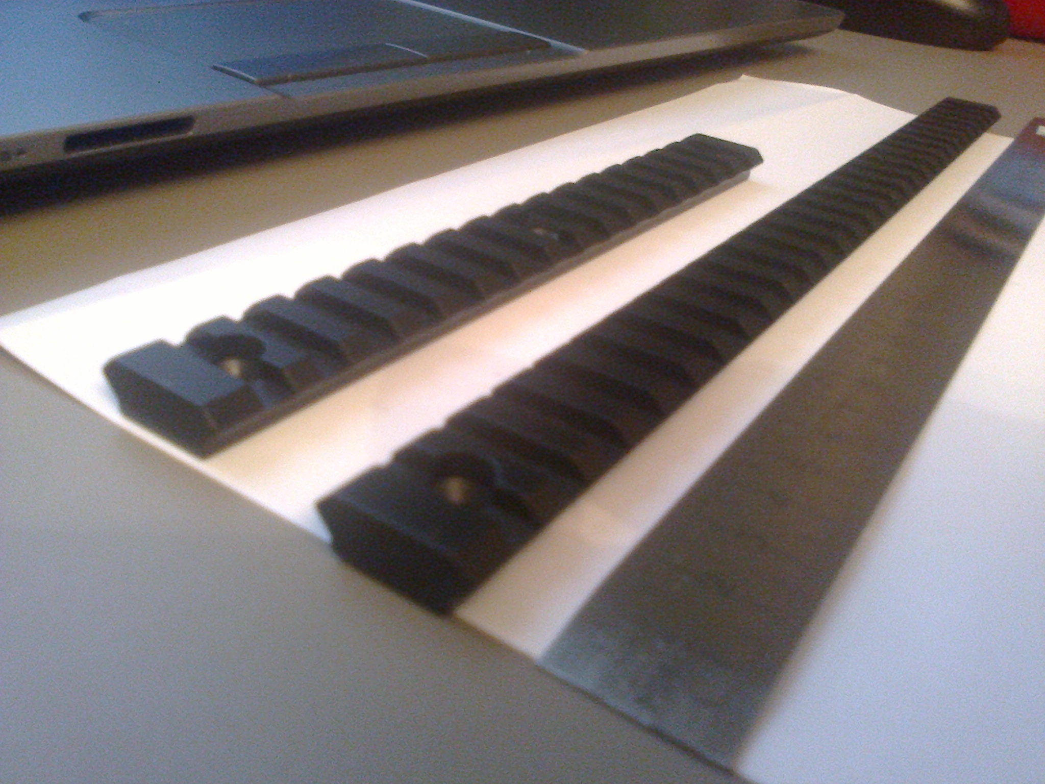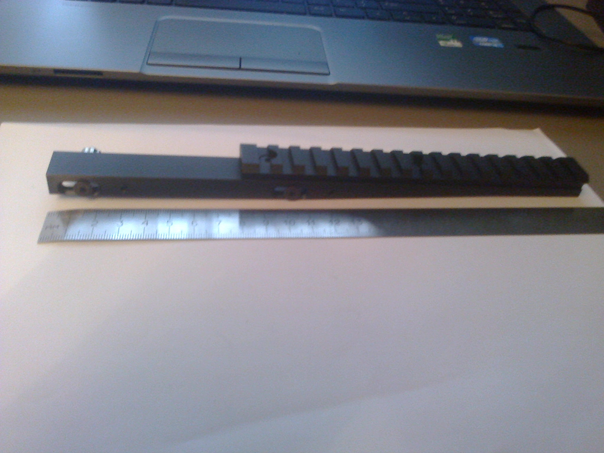Установленная база закрывает прицельную планку оружия, поэтому использовать ее для крепления только подствольного фонаря или лазерного целеуказателя, без коллиматорного прицела, возможно только спилив верхнюю базу Weaver по линиям 1 (рис.1).
