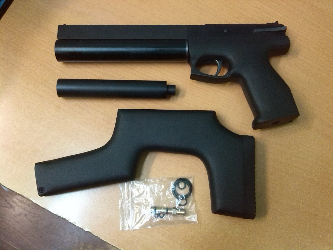 Однозарядник, папа LW,прямоток, открытые прицельные, возможность установки прицела на ласту, модер, съёмный приклад, два штуцера, резинки. Покупал лично у изготовителя. В Минск доставлен 05.04.2016 через друзей. Использовался по назначению не более 10 раз. В феврале был подвергнут небольшому ремонту. А именно – запал клапан и не позволял заправить. Помог вылечить болячку Игорь(fadeii). За что ему большое спасибо!!!