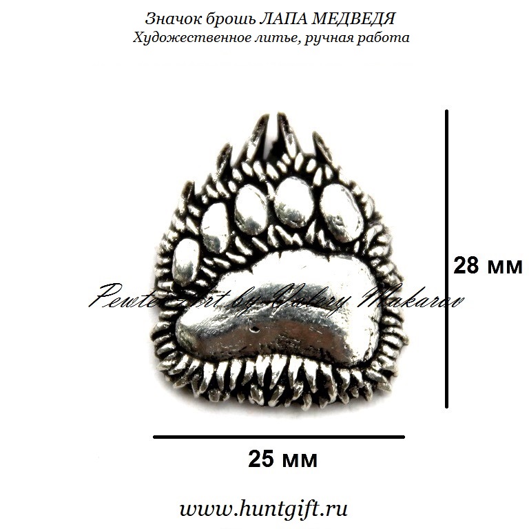 Металлические значки в виде миниатюрной копии передней лапы медведя.