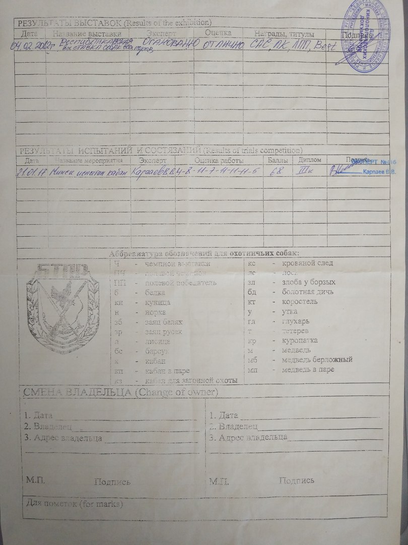 Π¨-Π₯Π°Π½Ρ‚, родословная β„– Π‘ΠšΠž/Pr 306-006920