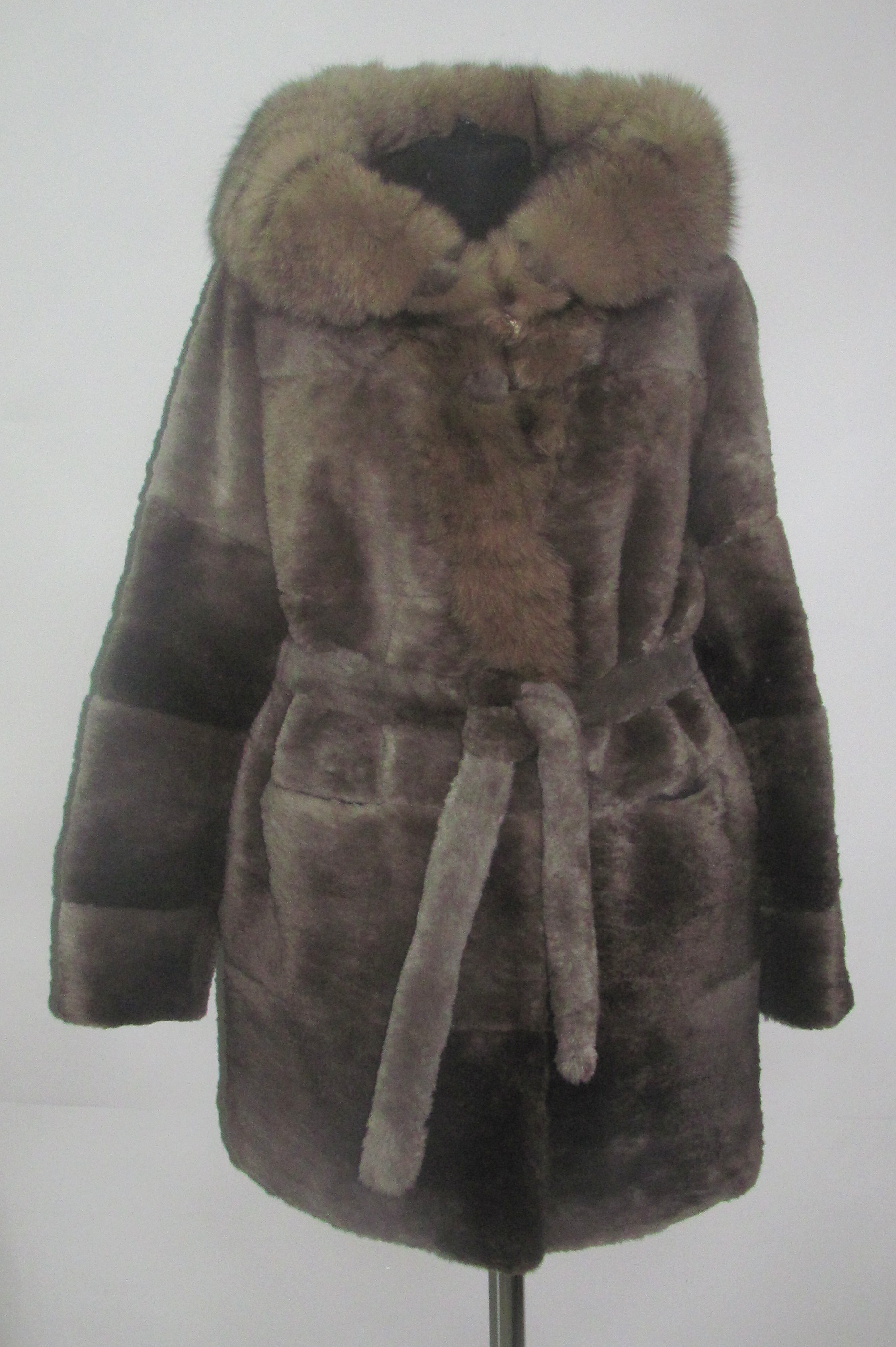 - Шуба из меха стриженного бобра в натуральном окрасе