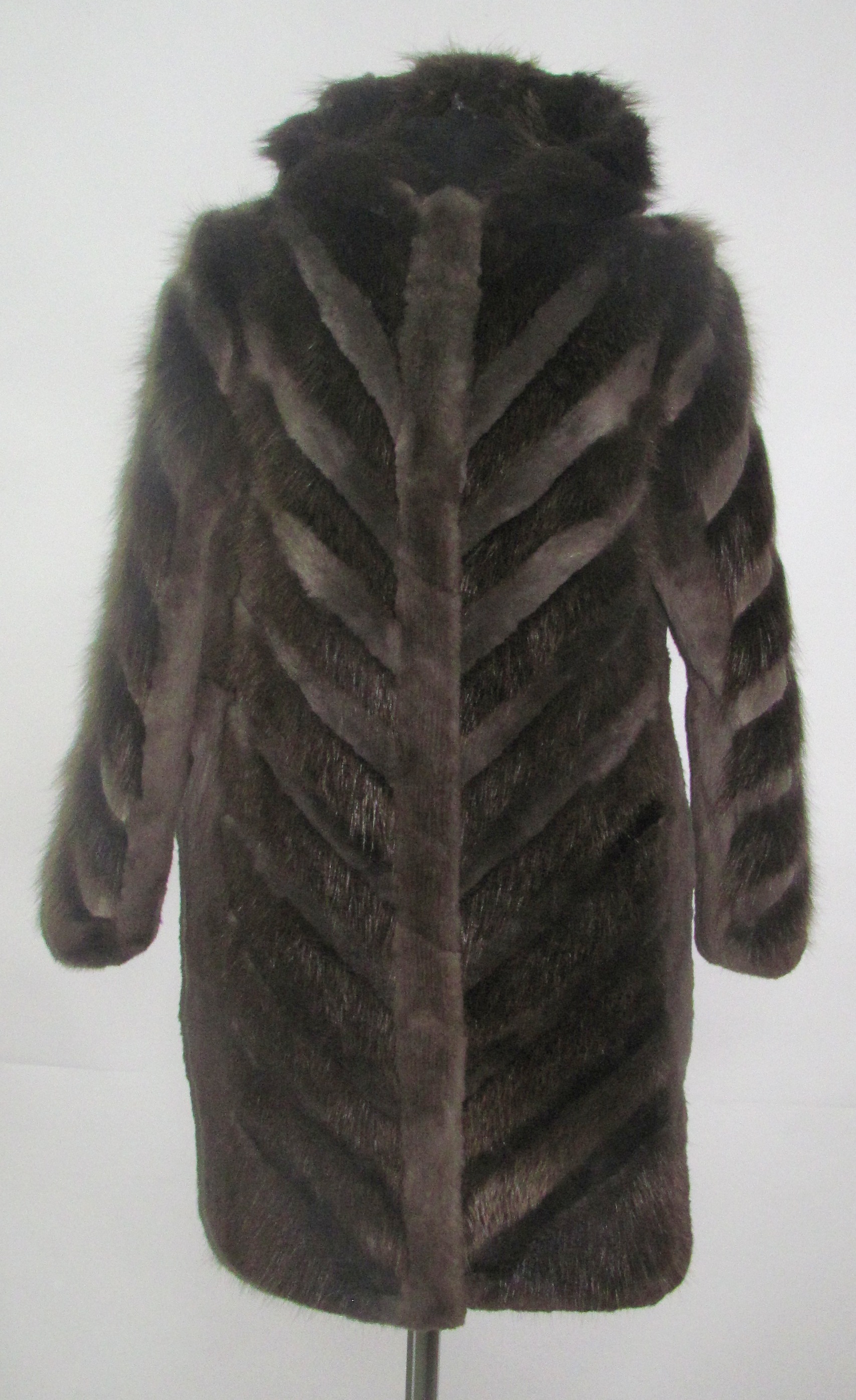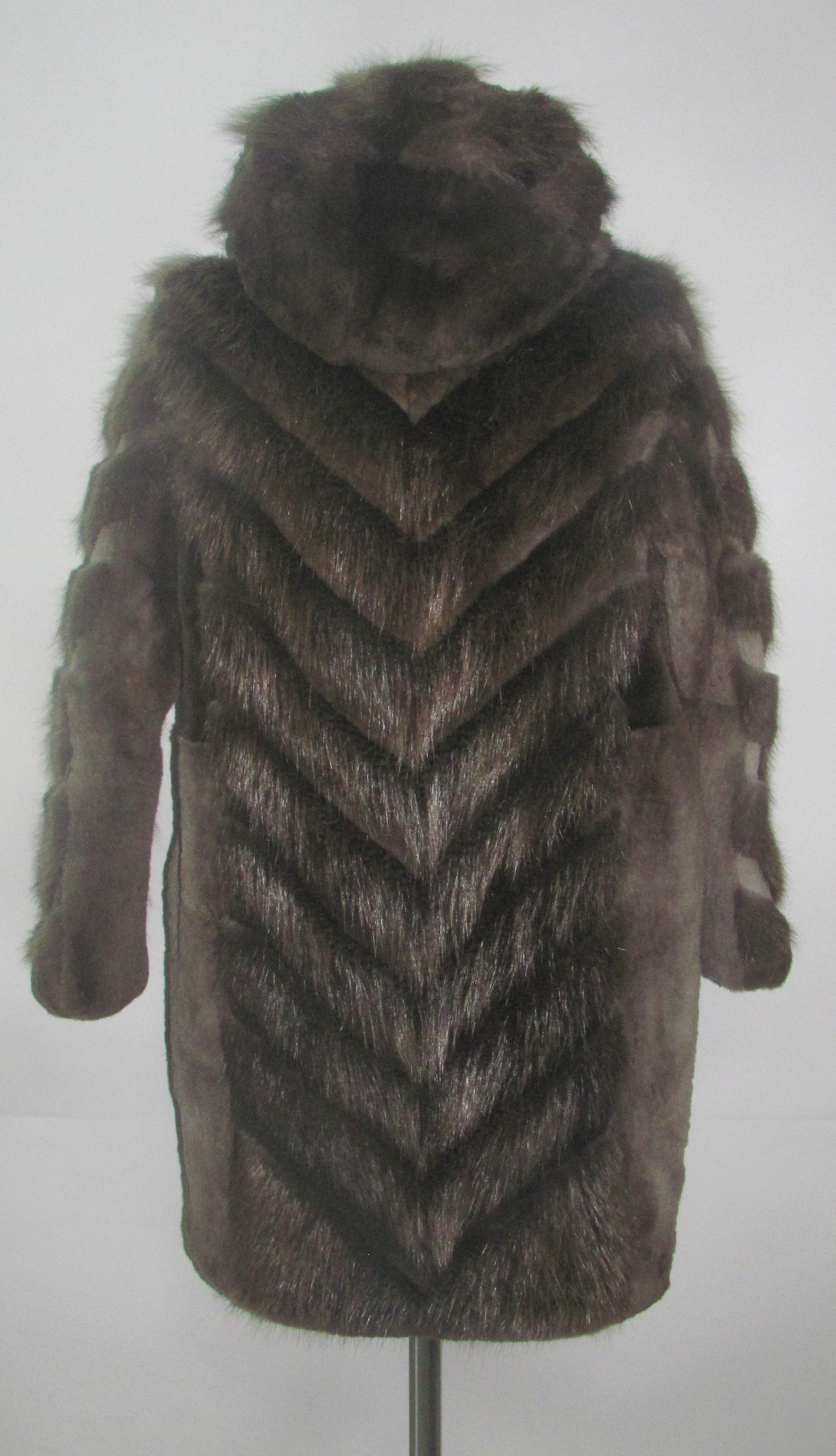 - Шуба из меха бобра с комбинированным воросом (стриженный и не стриженный) в натуральном окрасе