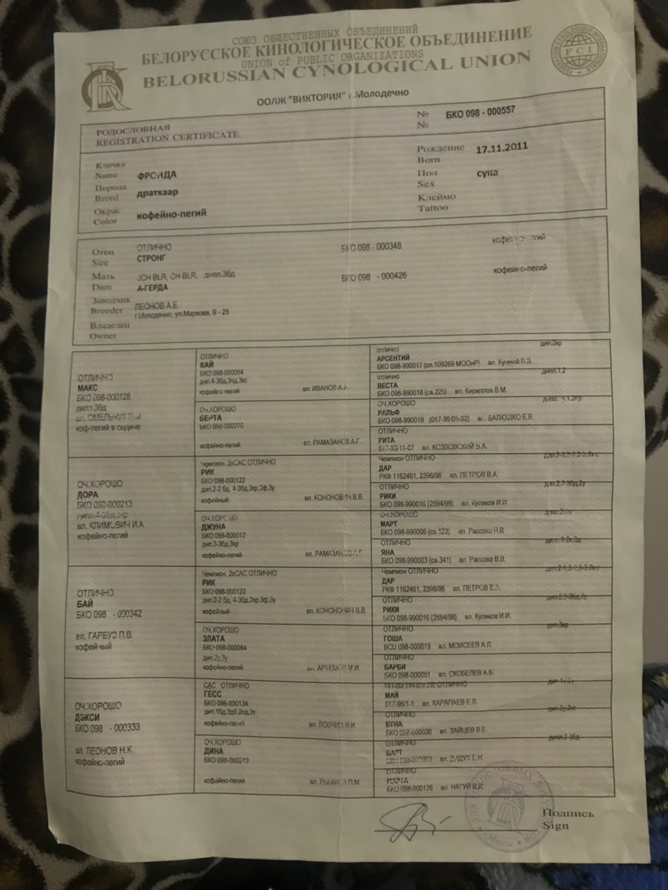 (Все дипломы за рабочие качества с указанием по виду дичи Д3-БД, Д3-ПД, Д2-КС)