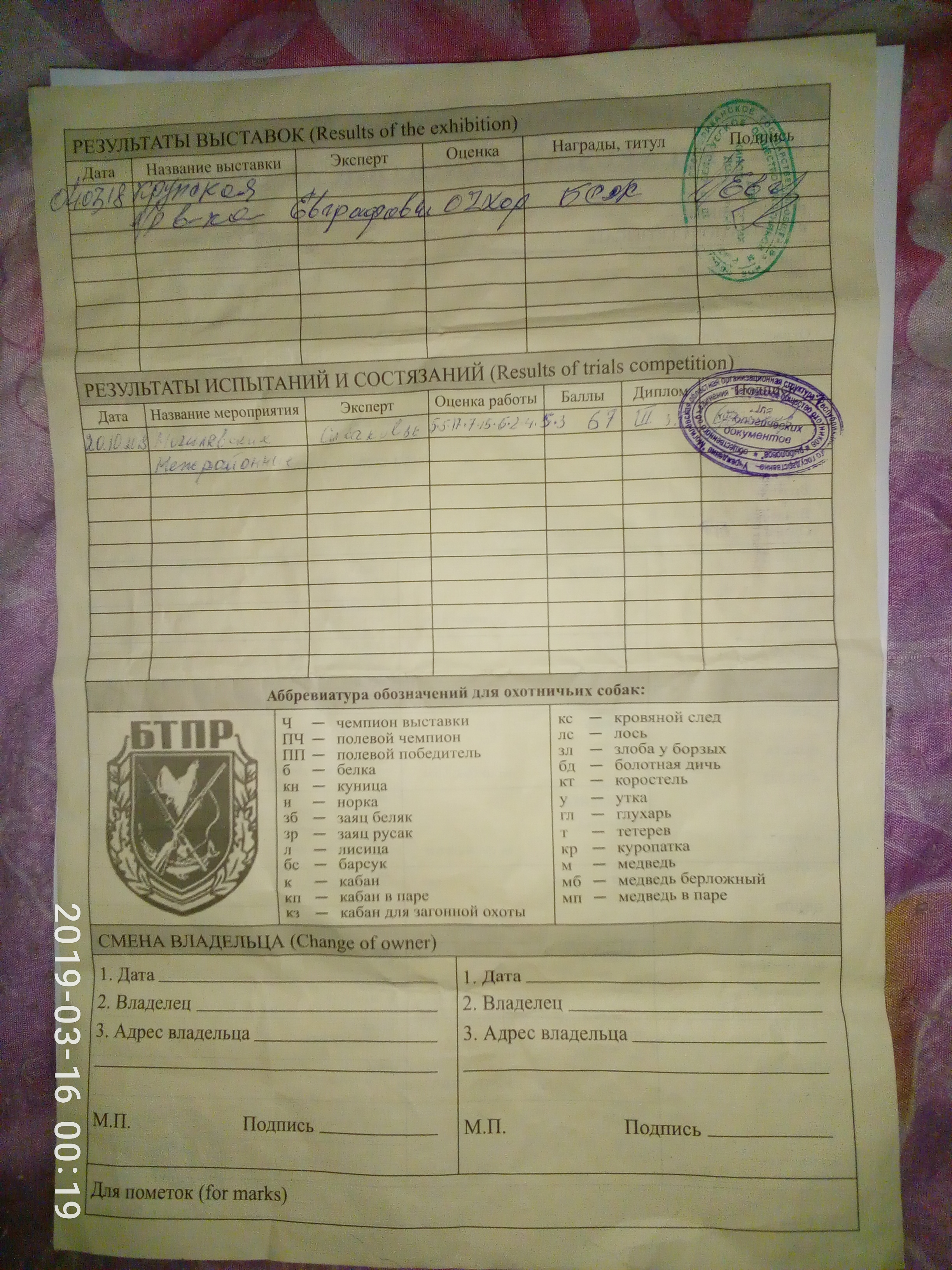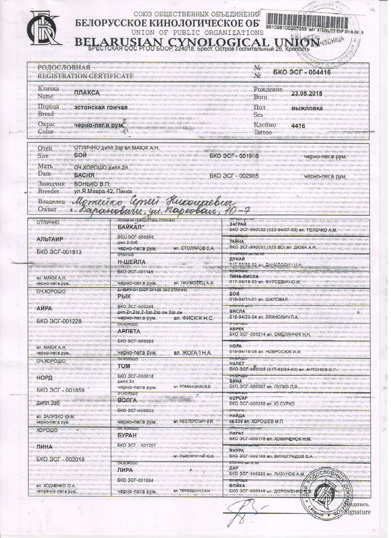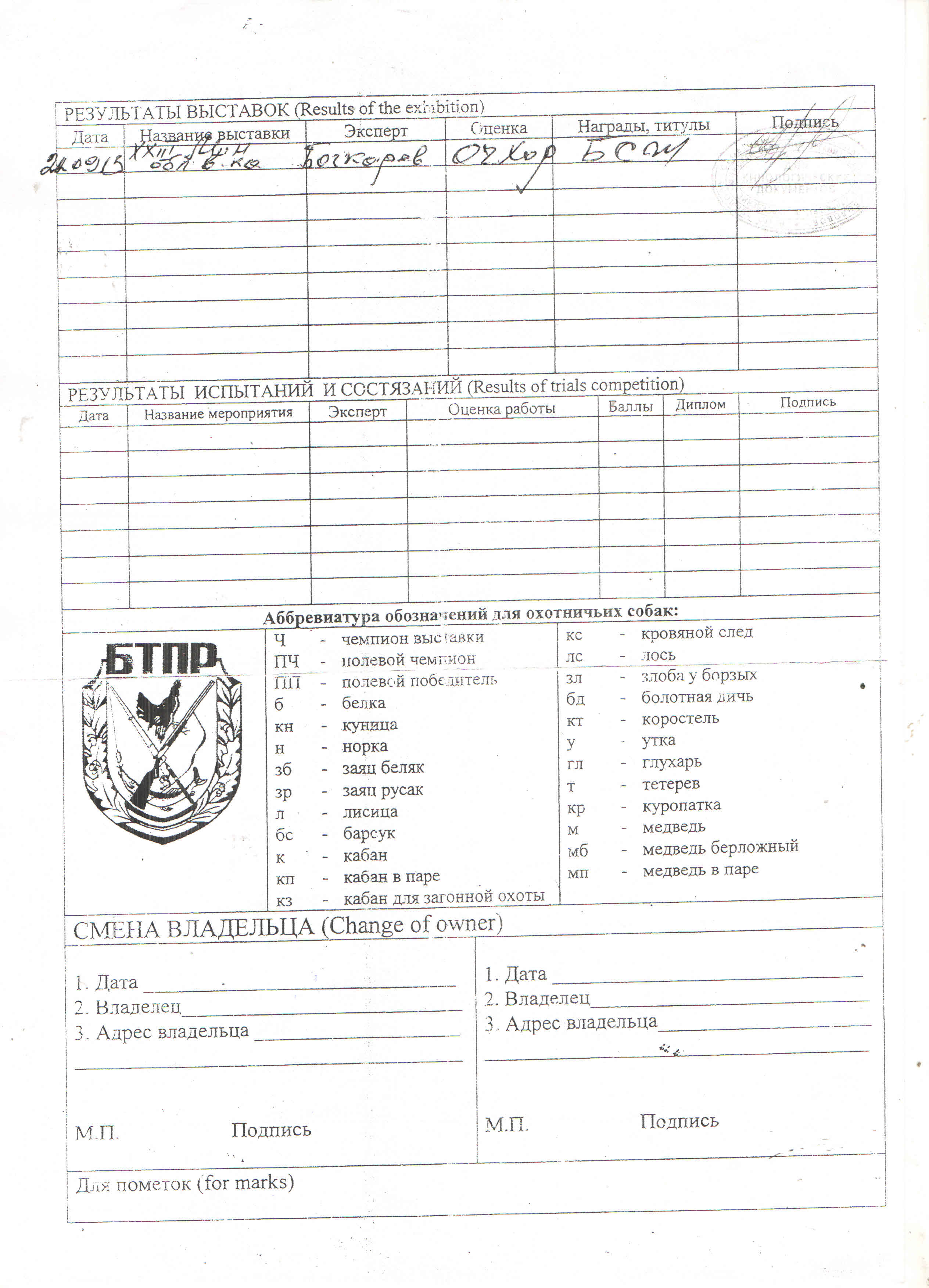 Re: Родословные дипломированных выжловок ЭГ в РБ