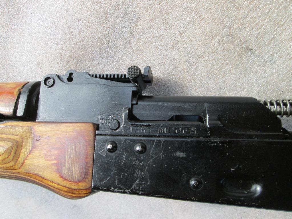 1966 год выпуска. Деактив - В патроннике штифт, в стволе шесть отверстий, газовый поршень заменен на болванку, УСМ некомплектный, личинка отсутствует (функции досыла-выброса нет). Взводится и щёлкает с прекрасным характерным "калашовским" звуком. В комплекте пиленый магазин и десяток ММГ патронов (капсюль наколот).
