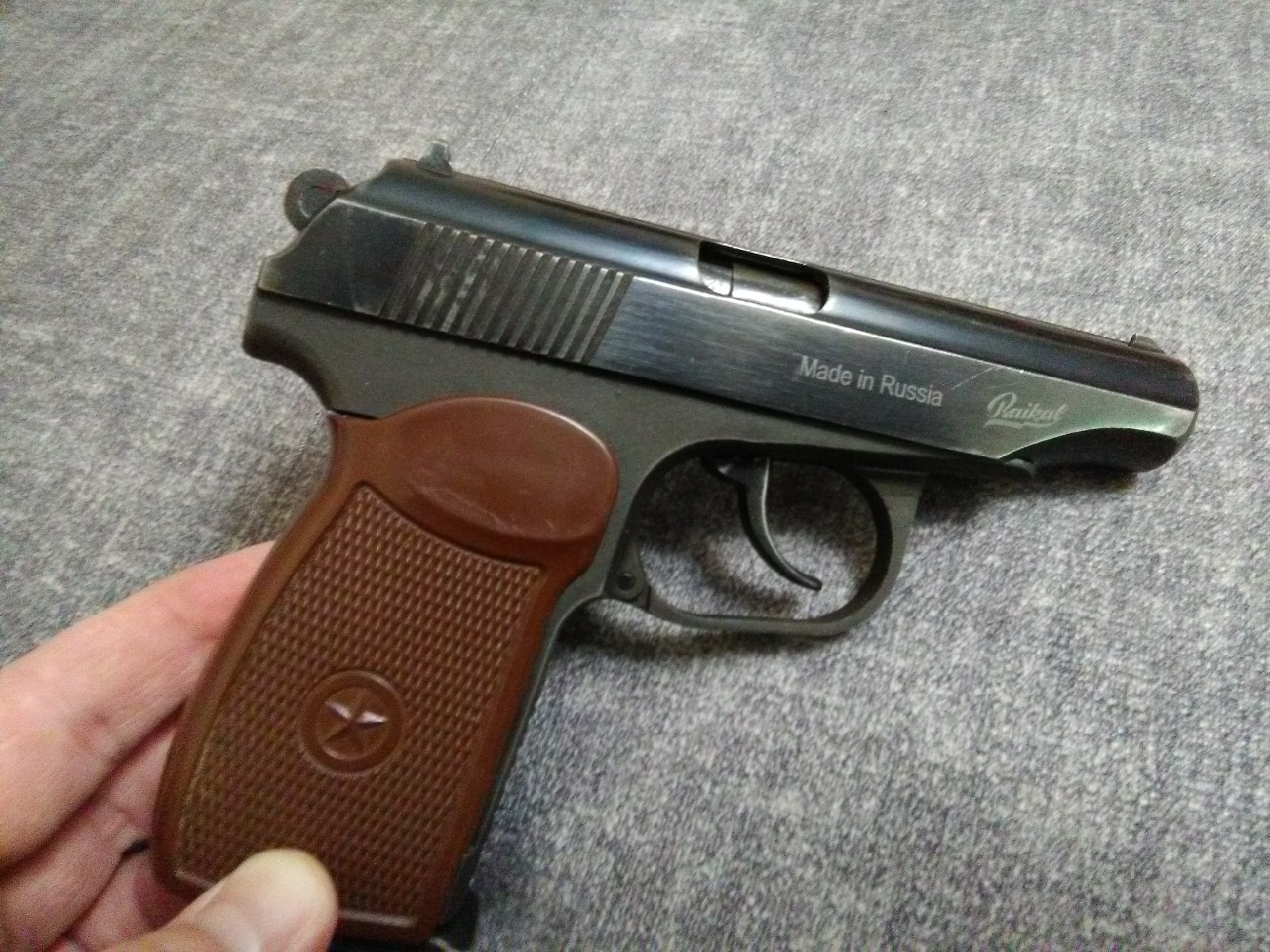 Внешний вид на фото,имеются потёртости(по асфальту не валялся).Из минусов: как водится лопнушая нанотехнологичная ижсмеховская пластиковая рукоятка и отломившаяся ось предохранителя.