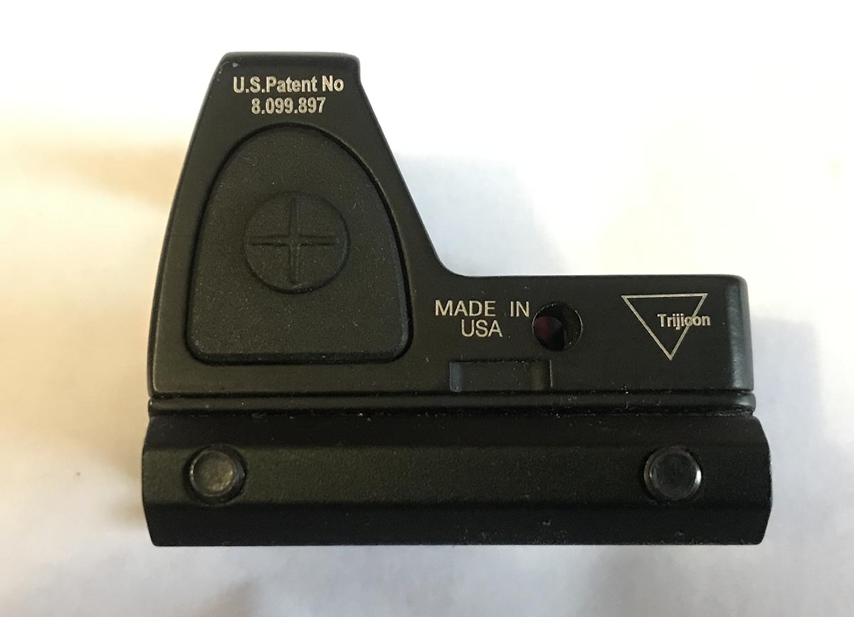 Коллиматор, реплика Trijicon миник, регулировка яркости кнопками, 7 уровней яркости, метка - красная точка.