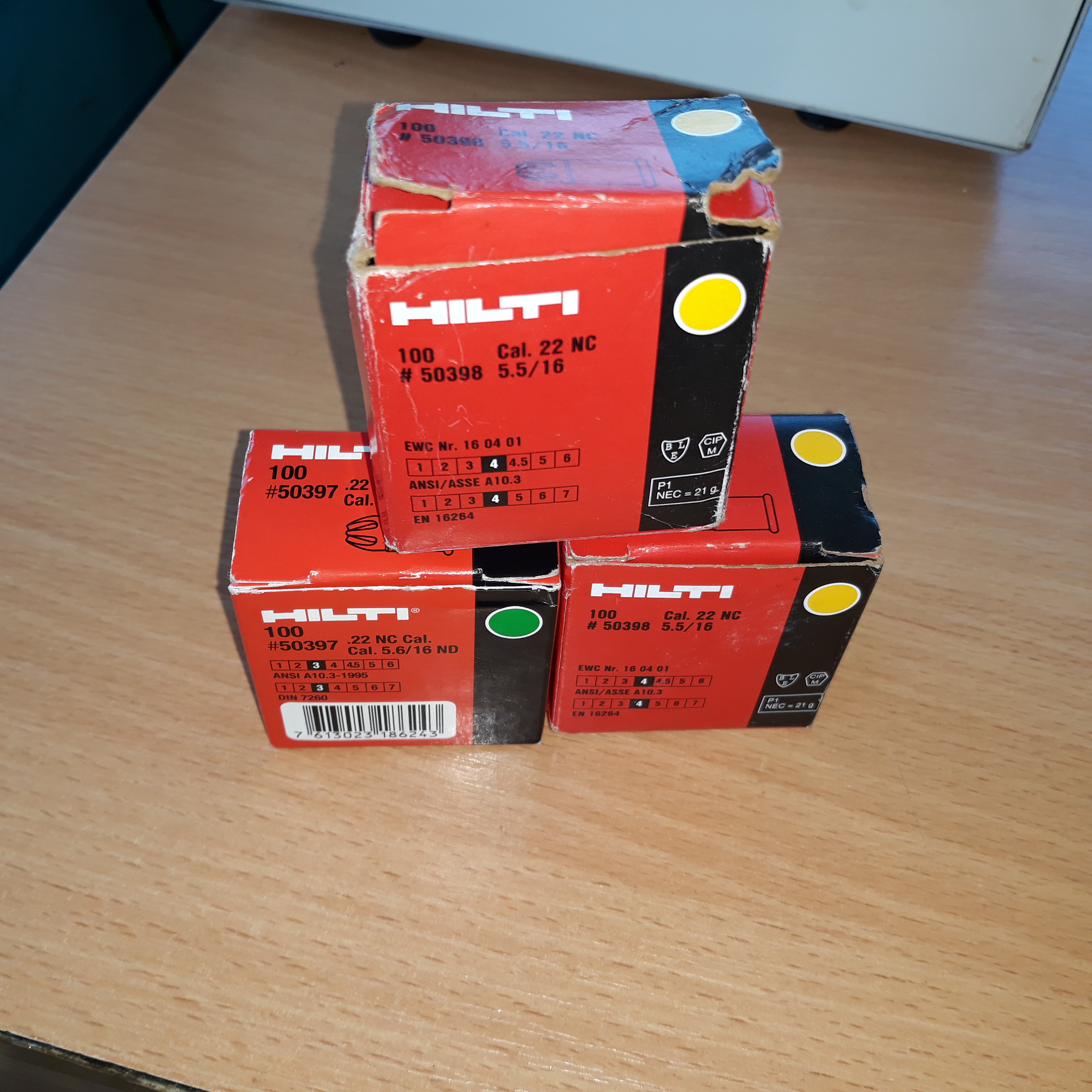 Продам Хилти 5.6 зеленые и желтые две пачки в третьей59 шт.20 руб.