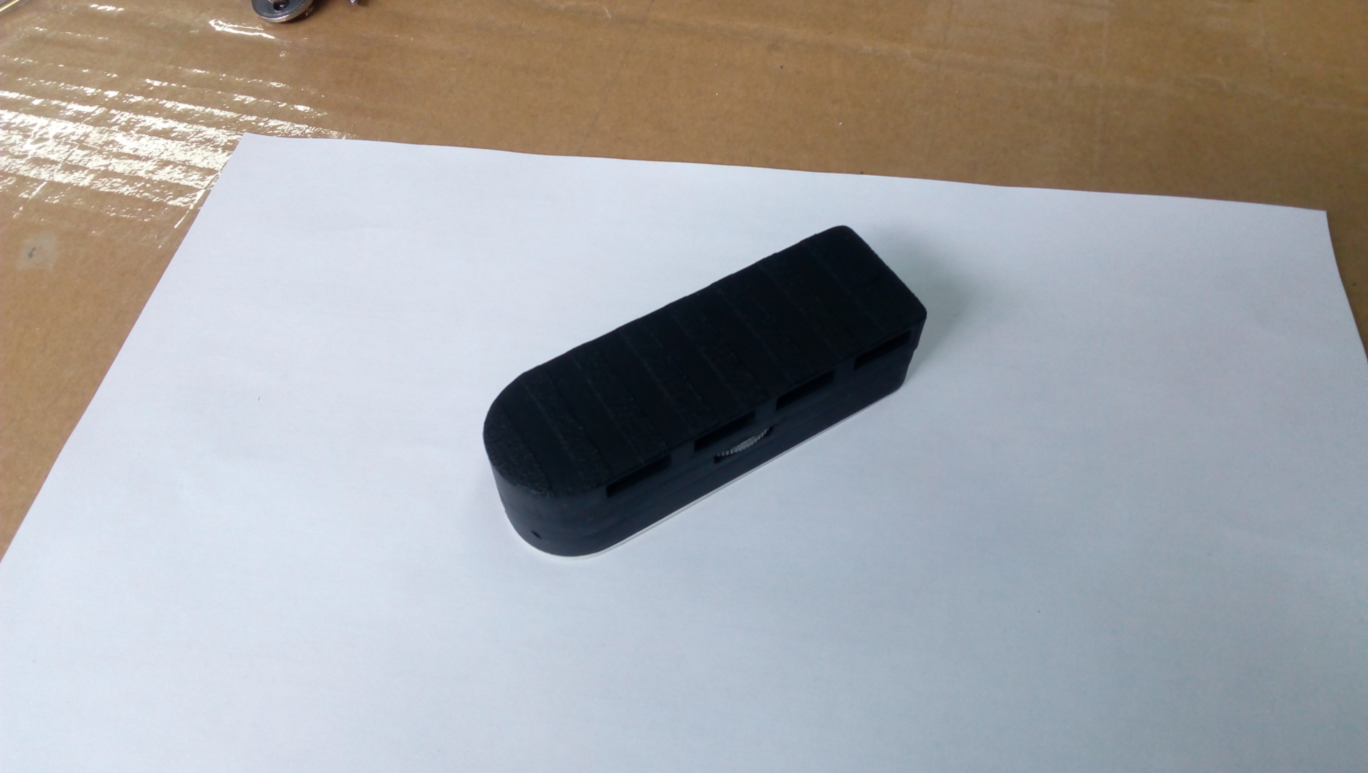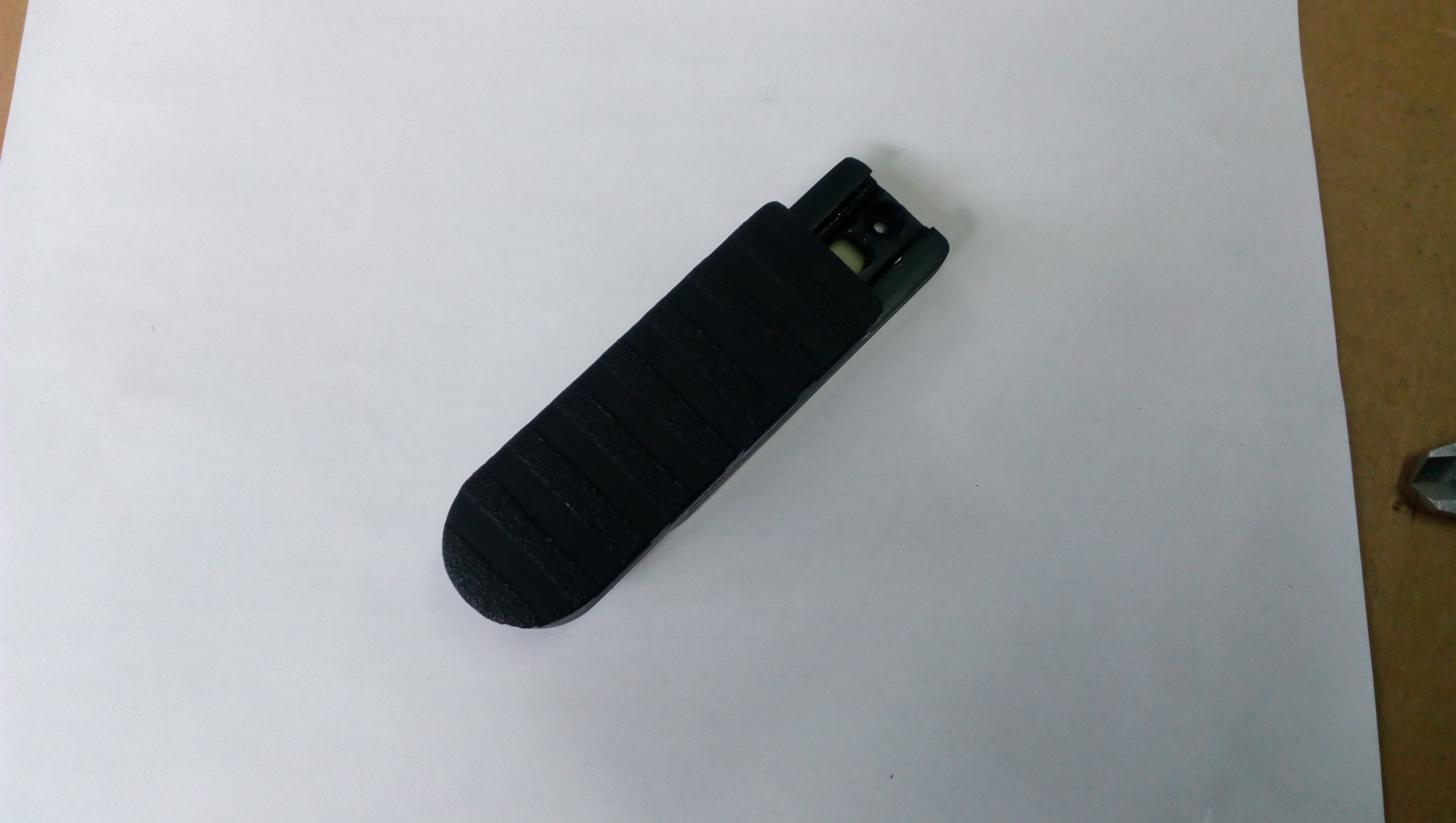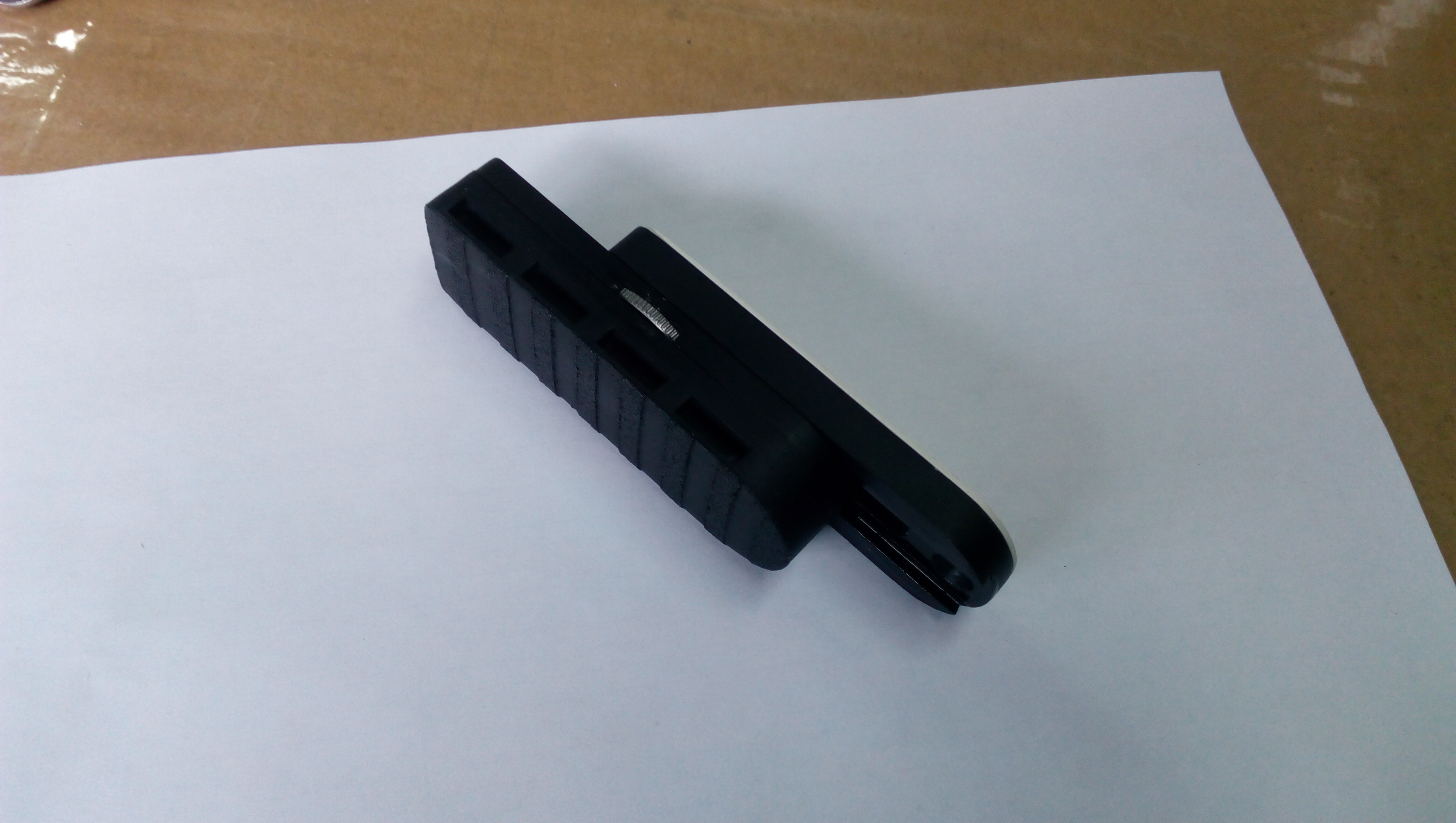 Накладка-пластик (3D печать),для того чтобы поверхность была не скользкой- на лицевой стороне нанесены полоски мелкозернистым антигравием. Интересно выглядит и держится надёжно!