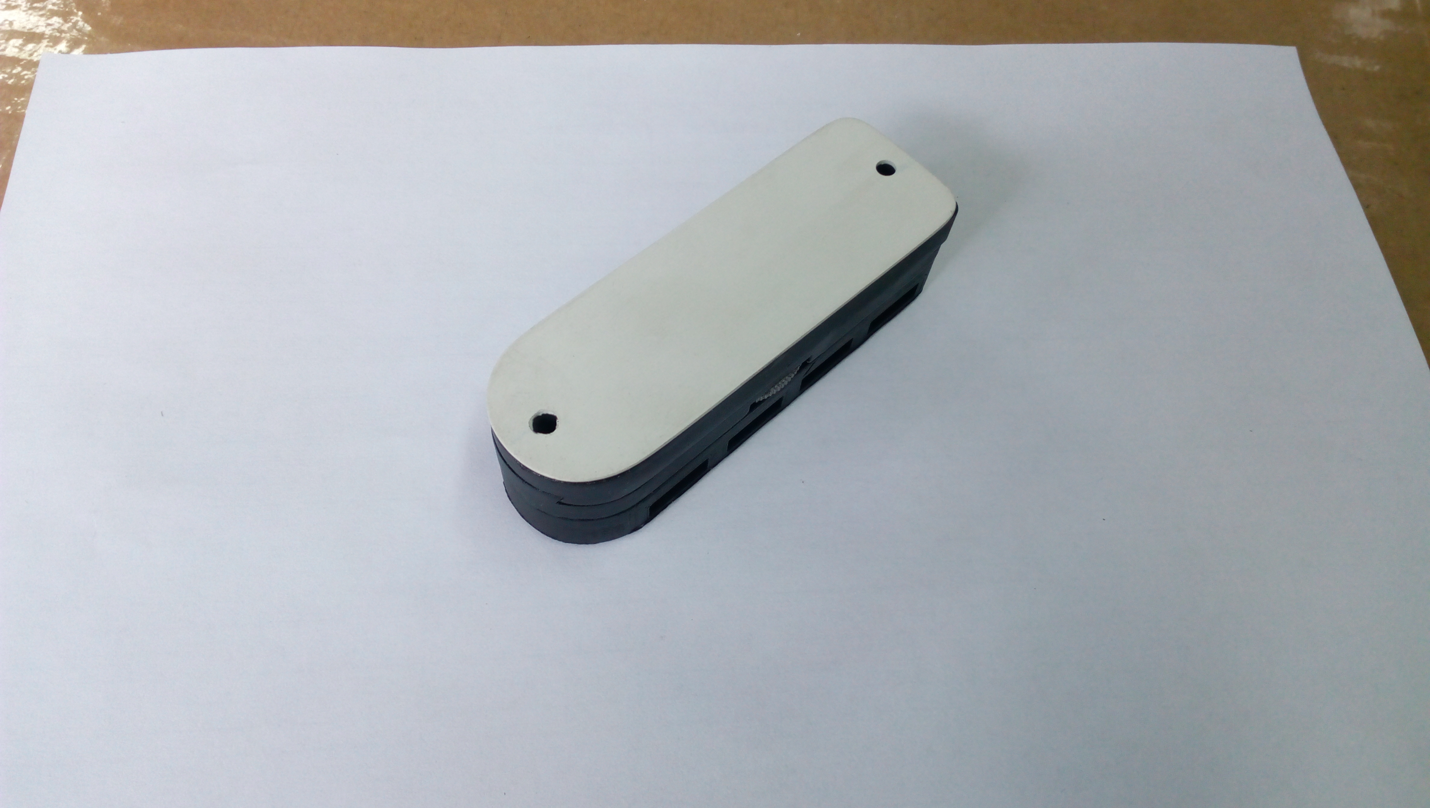 В нижней половинке два зенкованных отверстия под крепёжные винты или саморезы.