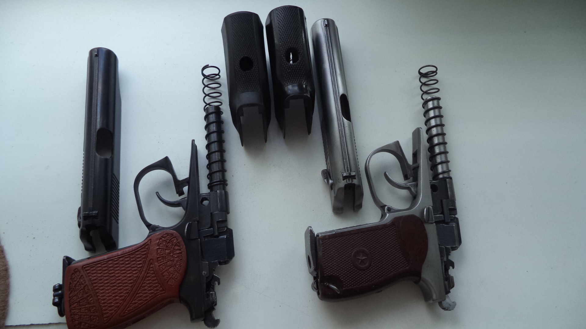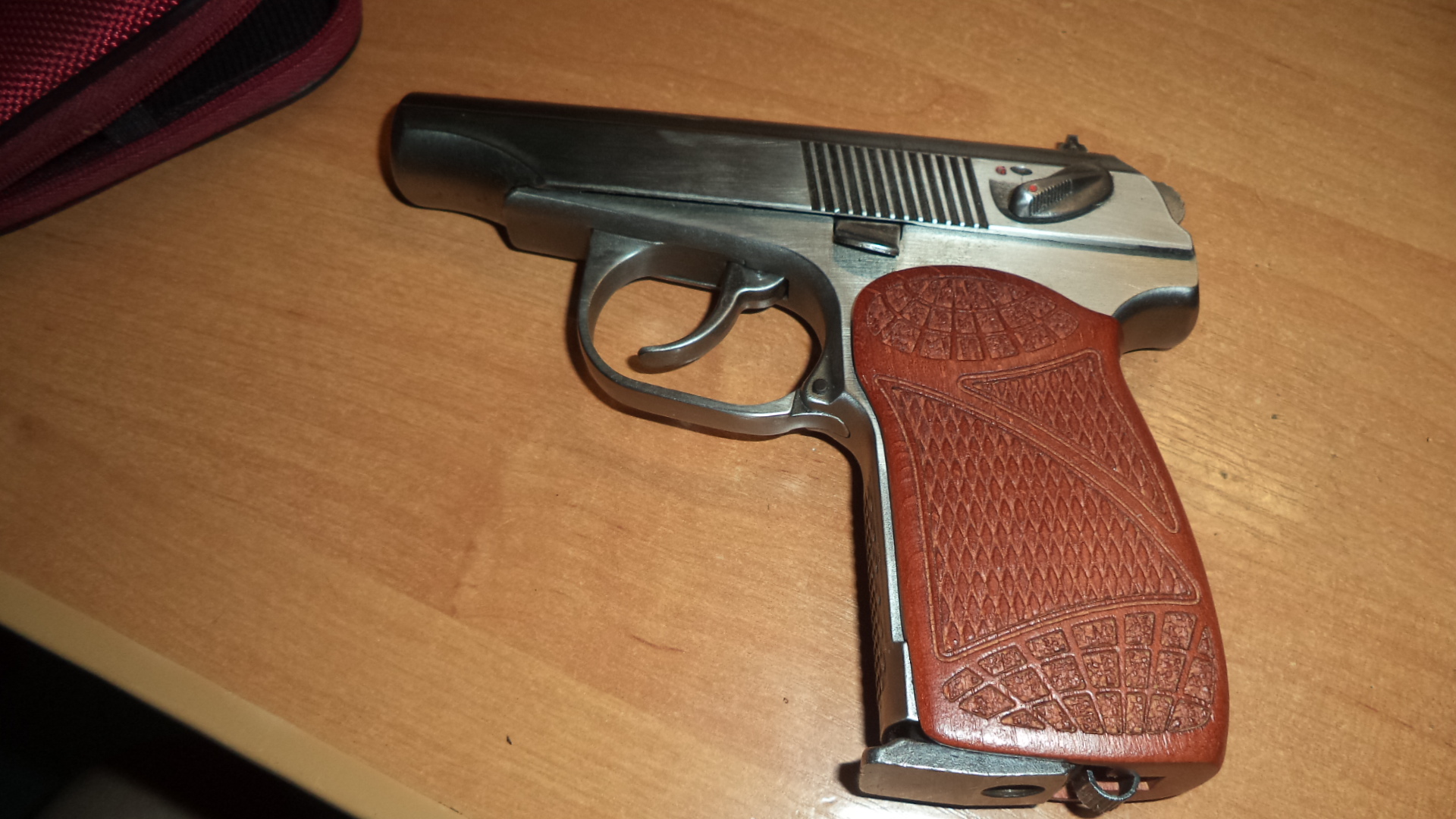 654ые . Черный хорошее воронение , голова с зацепом, прокладка ствола, отличная деревянная рукоять отменного качества, с красивым рисунком. Поджимной винт с антабкой. Цена 170 р. Шлифованный с бакелитовой рукояткой( есть не большой скол)голова с зацепом гайка без зацепа.В магазине нет клапана.Цена 140 р. Стволы у обоих родные. Возможен небольшой торг, пересыл. МТС 80336863322. Сморгонь.