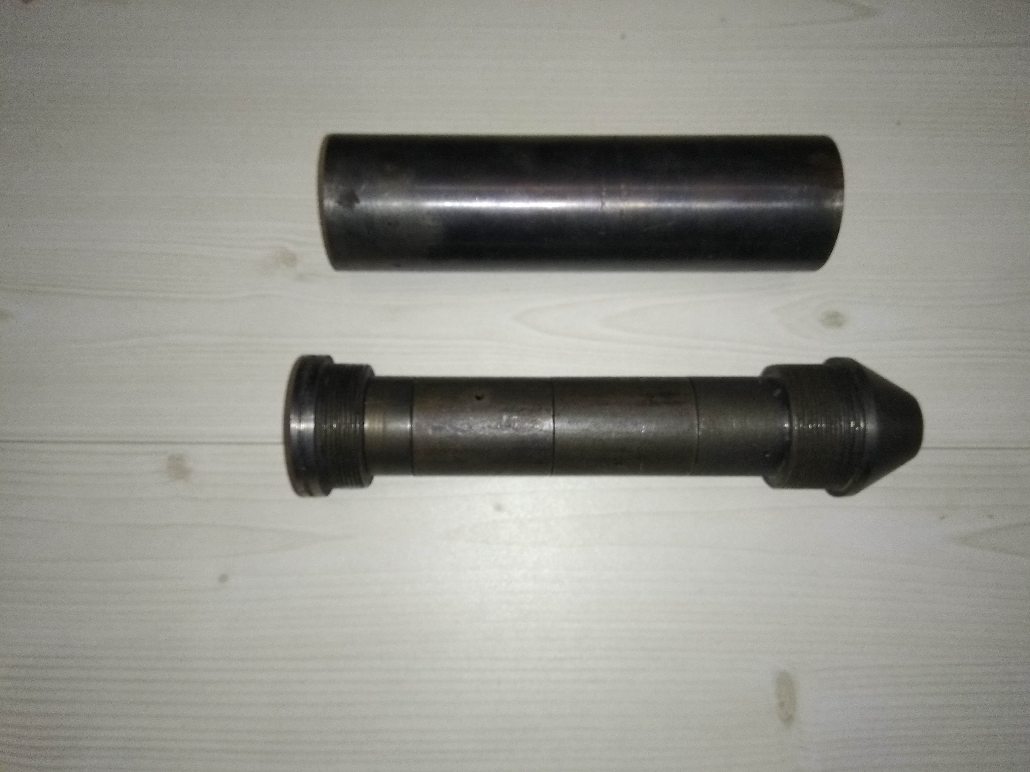 1. Чудо инженерной мысли- надульник/модератор/утяжелитель,:))) под резьбу м12х1. Максимальный вес-439гр, минимальный-340гр. Длина 140 мм, диаметр- 33 мм. Материал- сталь. Внутри 3 стакана, диаметр отверстия в пробке и стаканах 6мм. Все вкручивается друг в друга на резьбе. -30руб.
