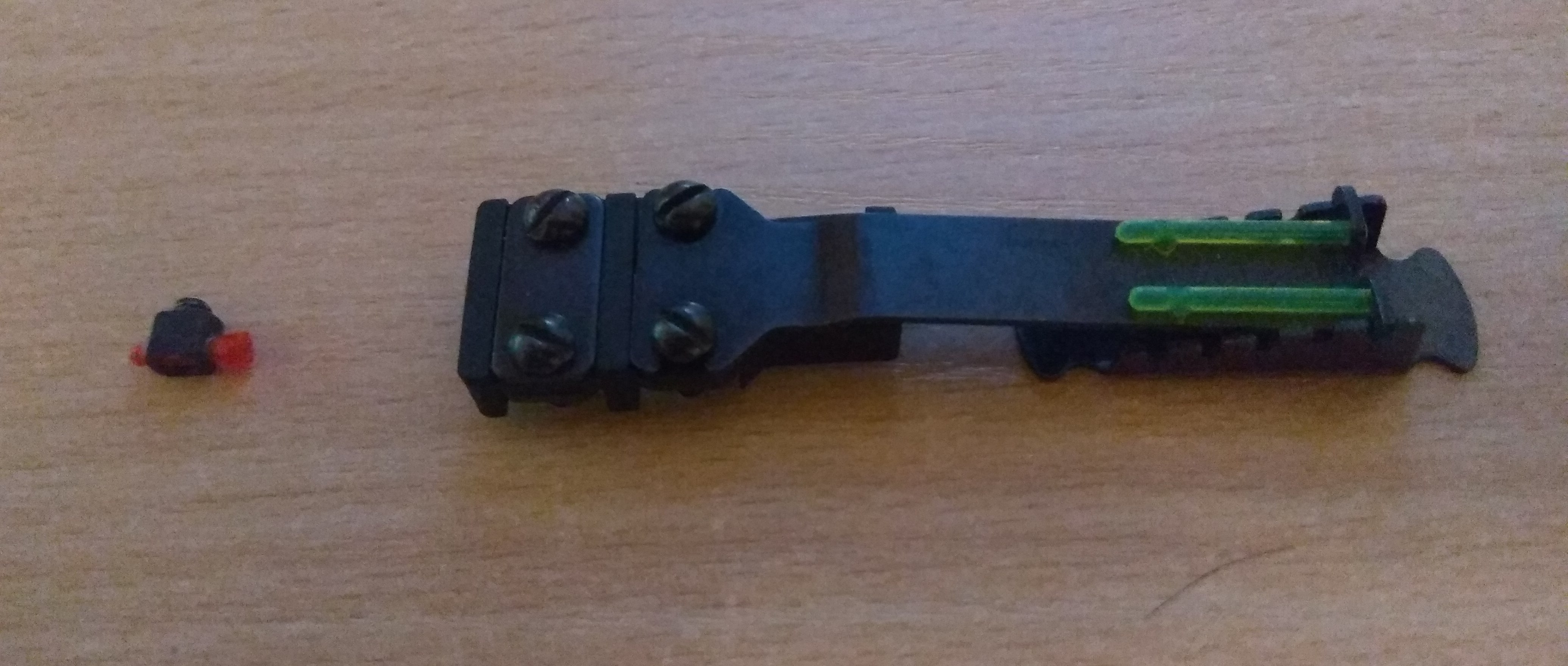 1. Мушка и целик Hiviz для гладкоствольного ружья. За комплект прошу 50 руб. Целик устанавливается на вентилируемую прицельную планку в любом месте на ваш вкус. Обзоры сего девайся легко можно найти в интернете.
