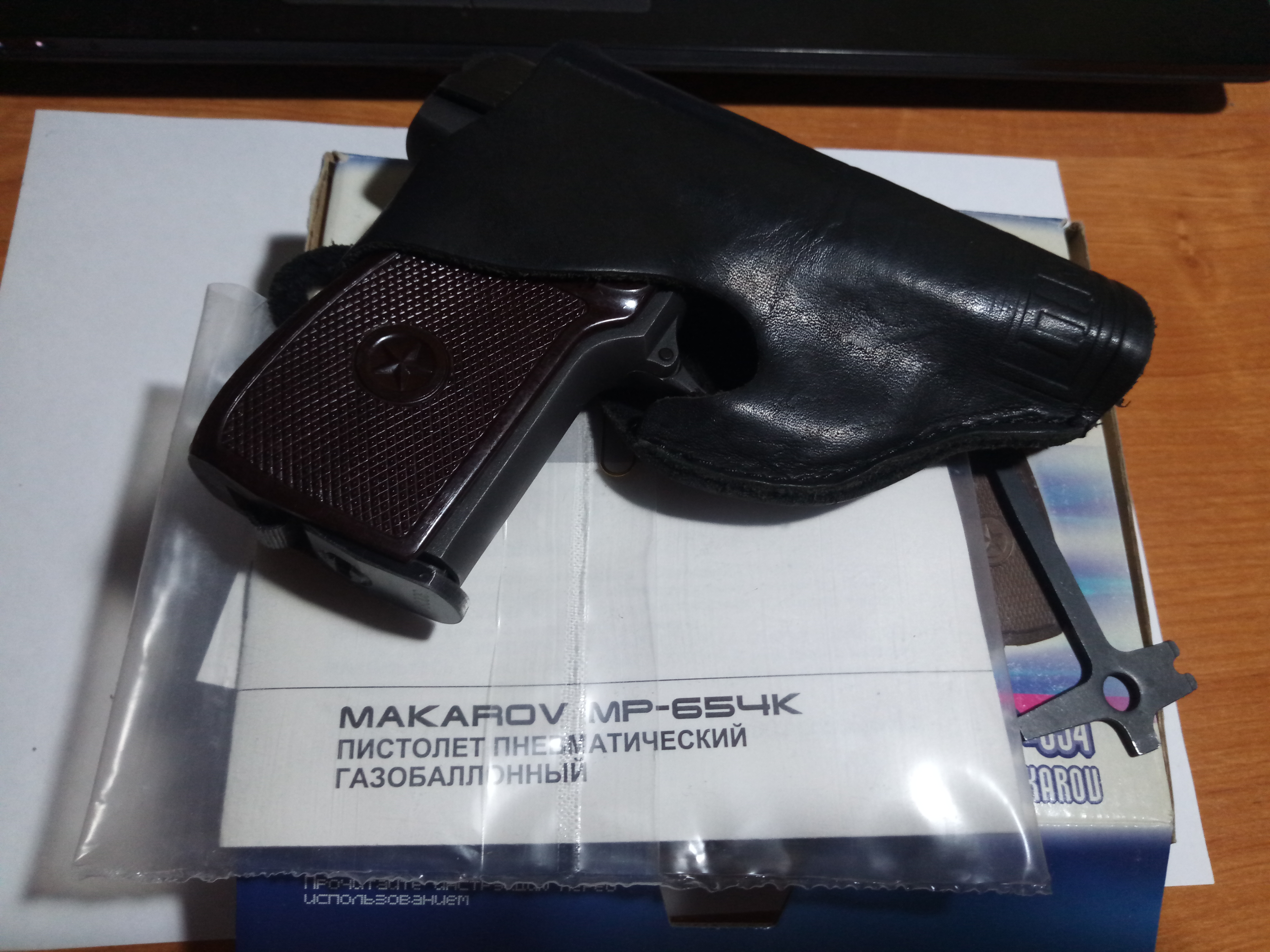 Продам МР-654К-32 (300 серия) в идеальном состоянии и на одних номерах. Фигурная скоба, борода, бакелитовая рукоять, имитатор выбрасывателя. В комплекте коробка, документы, кобура ПМ, ключ, запасные прокладки, стоковый ударник, запасной клапан (не расточенный), запасное седло клапана, гайка ствола под прокладку.