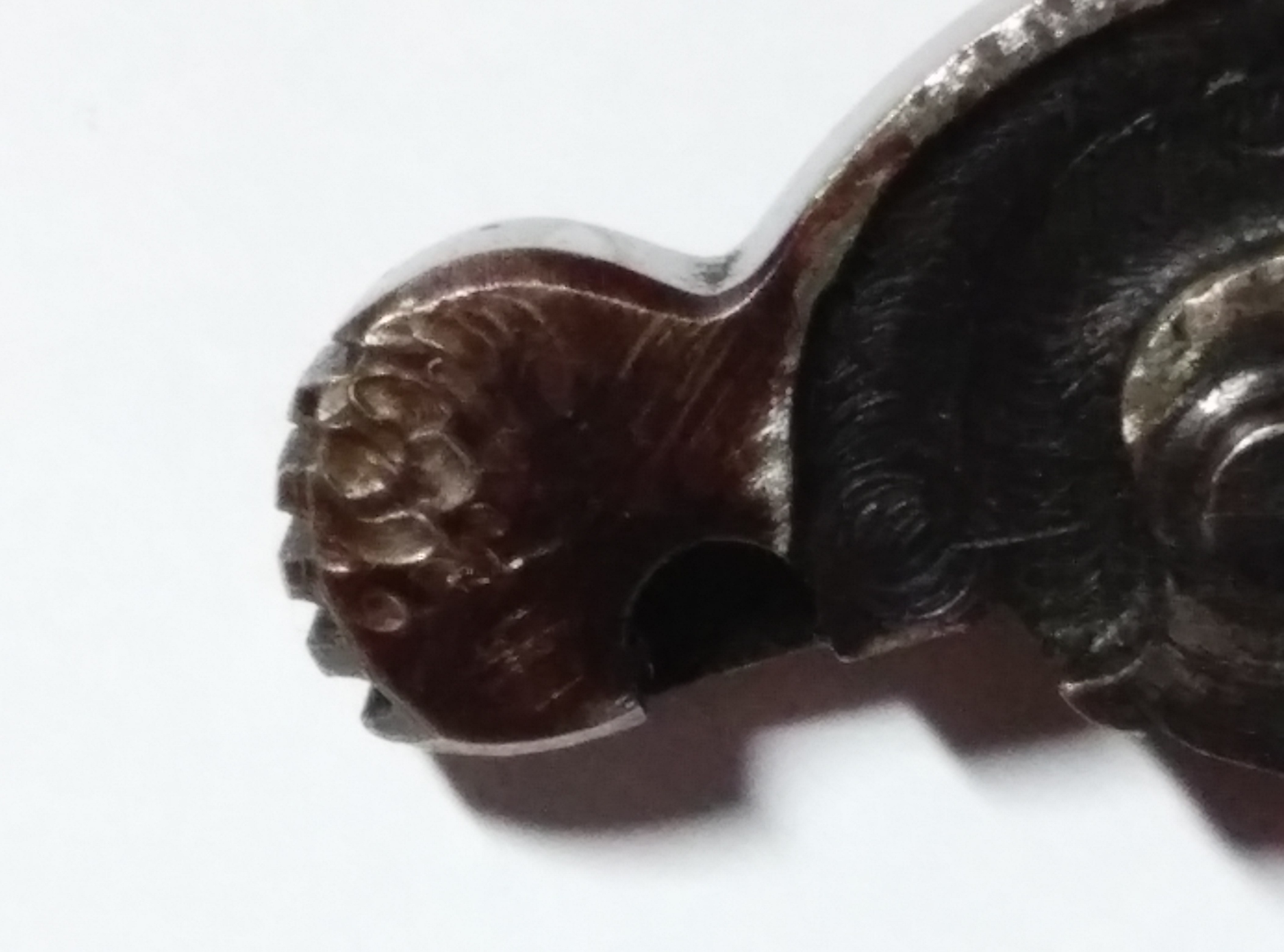 Привет всем! Фотки "бедного" курка. Зубами его кто то грыз, что ли? Но в изделии работает. В куче из которой выбирал с 5-ю насечками был только этот!