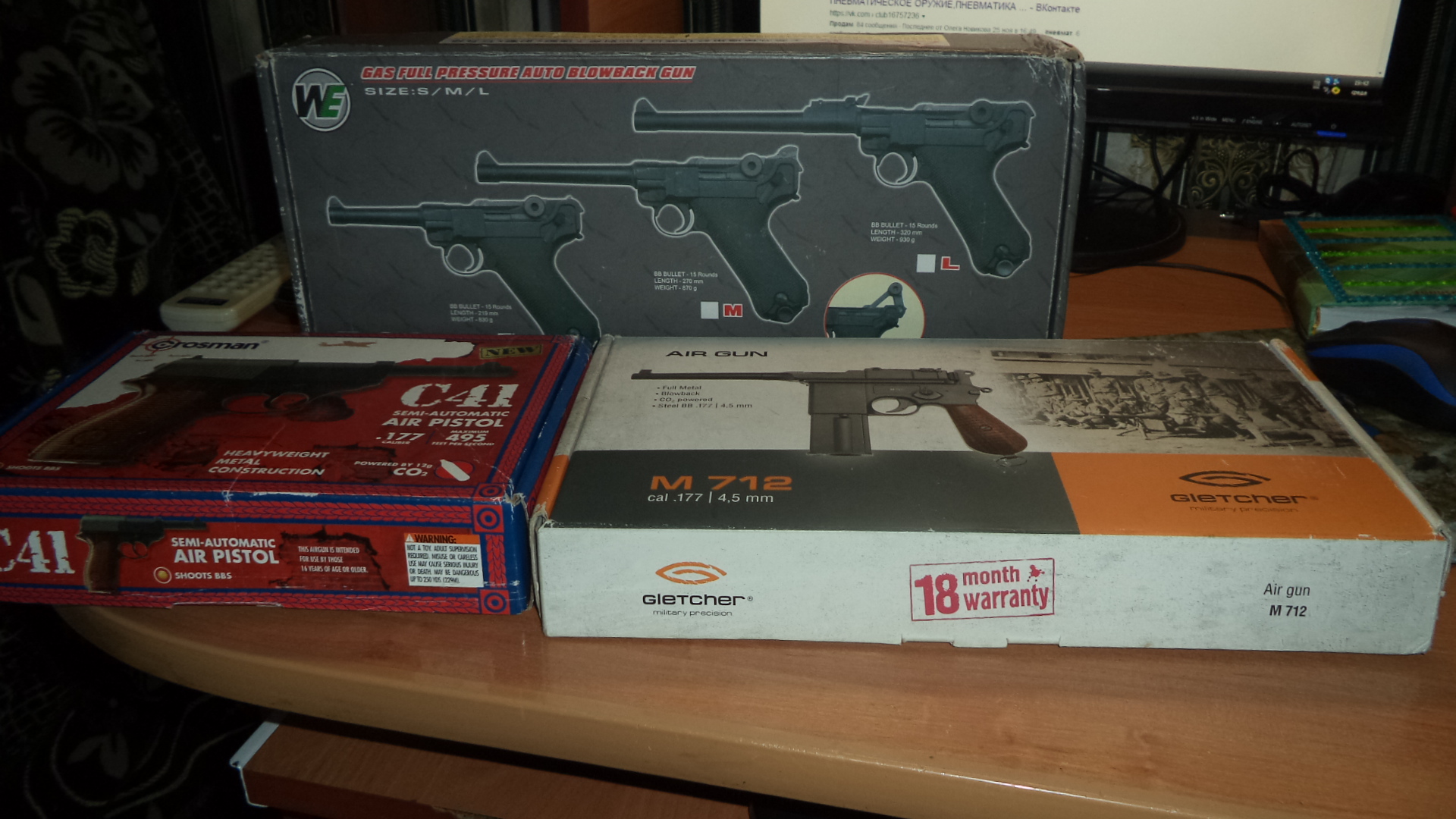 Что бы не выставлять кучу тем, выставлю все три в одной. ВАЛЬТЕР КРОСМАН С-41 почти новый 140р, МАУЗЕР М-712 почти новый есть несколько царапин 170р, ПАРАБЕЛЛУМ WE АЙРСОФТ ХРОМ ( вещь) Состояние нового 200р. Все после покупки были проверены ( хозяином) и все , больше не использовались. СМОРГОНЬ, МТС 80336863322.