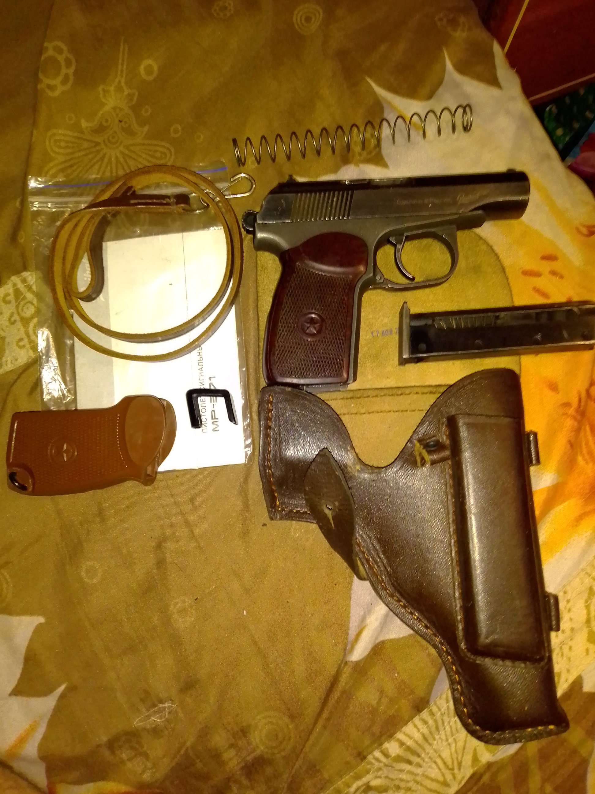Продам мр371,рукоять бакелит,пятка магазина металл,более мягкая пружина,страховочный ремешок,металлический подаватель,не много пластиковых и латунных катриджей,кобура,есть небольшие царапины,документы,за все 250 руб,тел.+375291605197