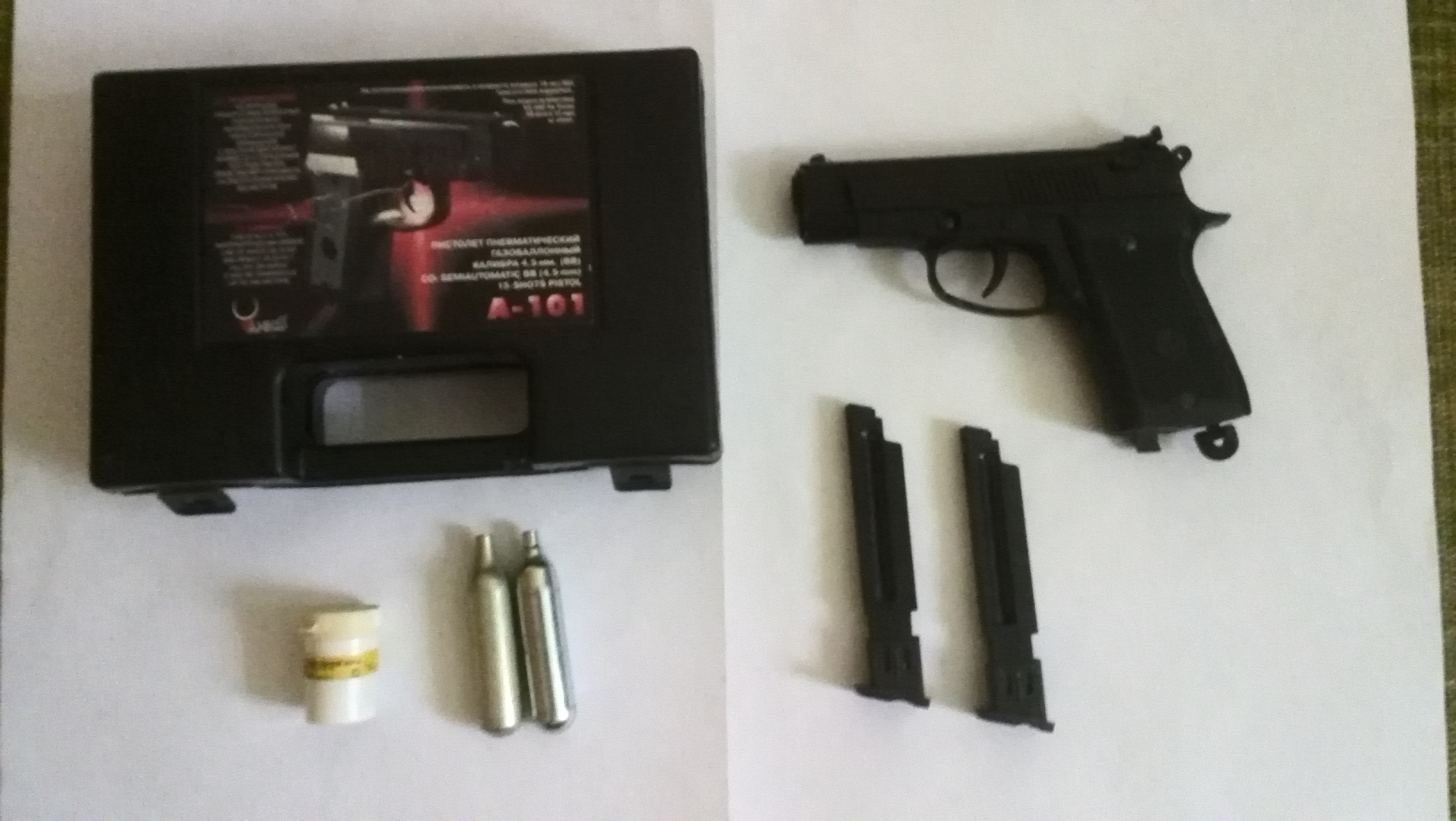 Комплект: Кейс, пистолет, 2 магазина.