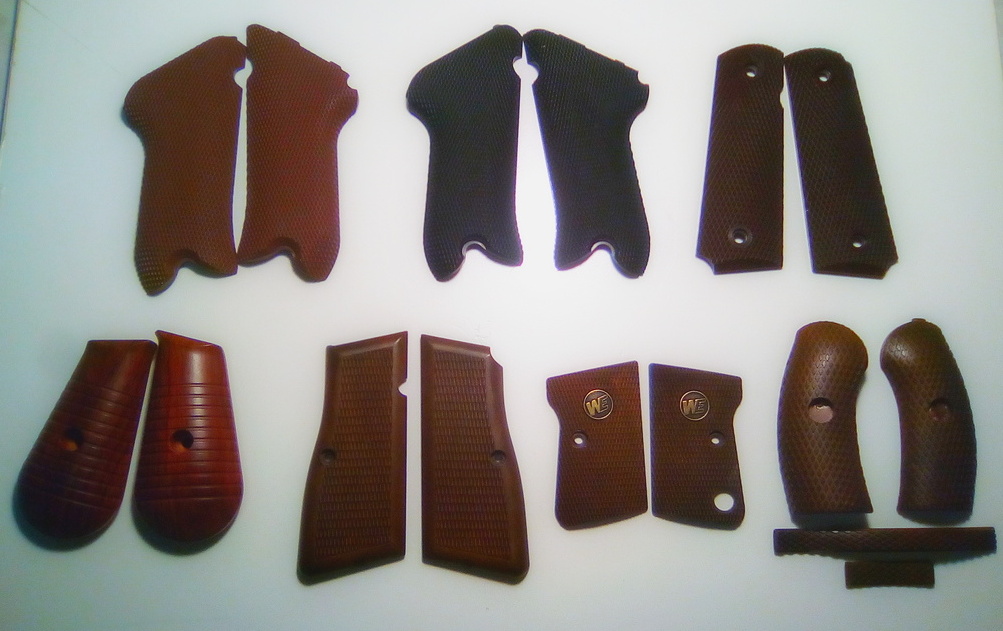 Продам по 5 рублей или поменяю на пиво накладки к пневматическим пистолетам Глетчер и WE. П08, 1911, М712, Браунинг ХП, Кольт 25 Джуниор, Наган. +375257869133