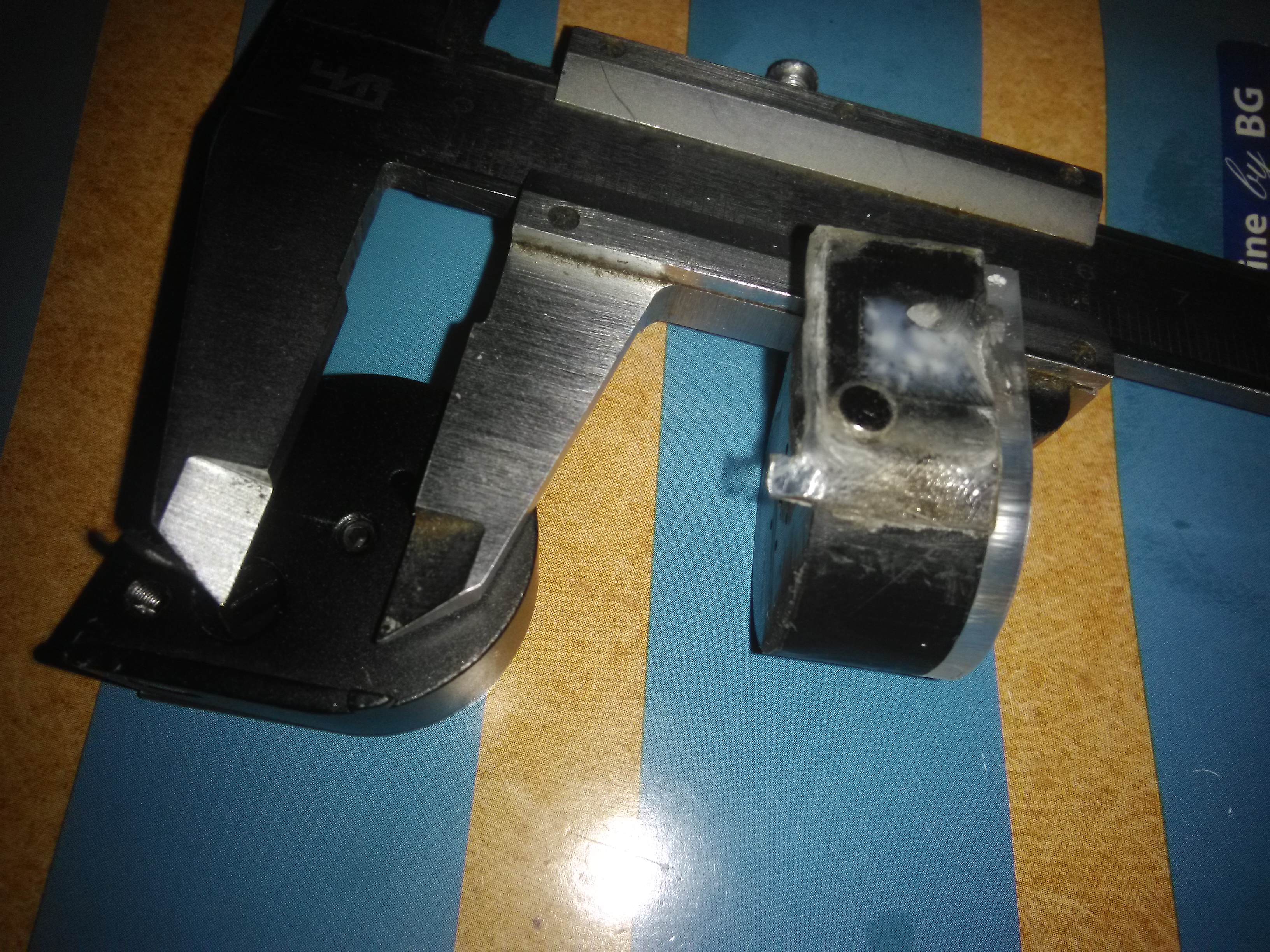 6. Приклеил, супер клеем, "подошву" к корпусу, вклелил магнитик. Соблюдал расстояние от центра отверстия до выступа, на родном барабанчике ~10мм, сделал ~9мм. Не забываем марадера будет вставляется справа, зеркально родному.