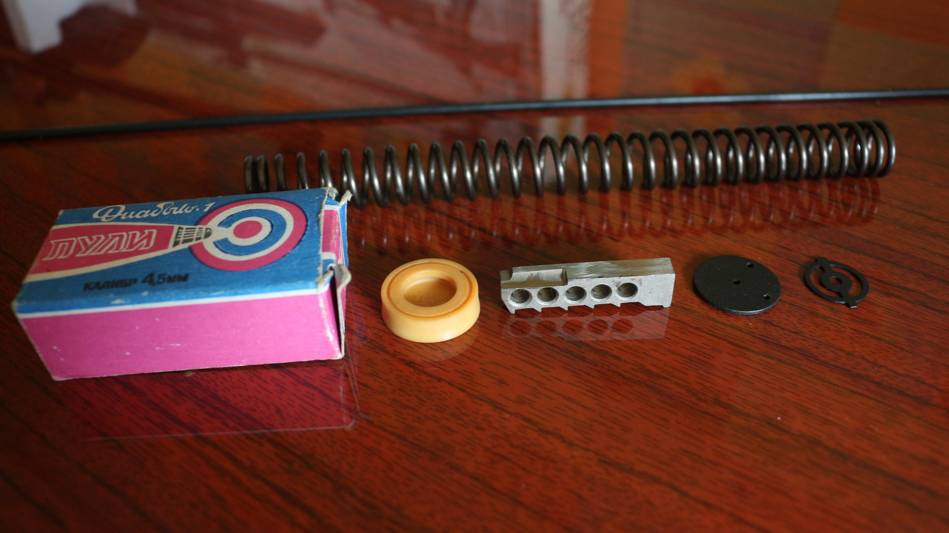 В этой модели ИЖ 61 Всё Металическое - коробка, ручка рычага взвода, магазин для пулек и др.