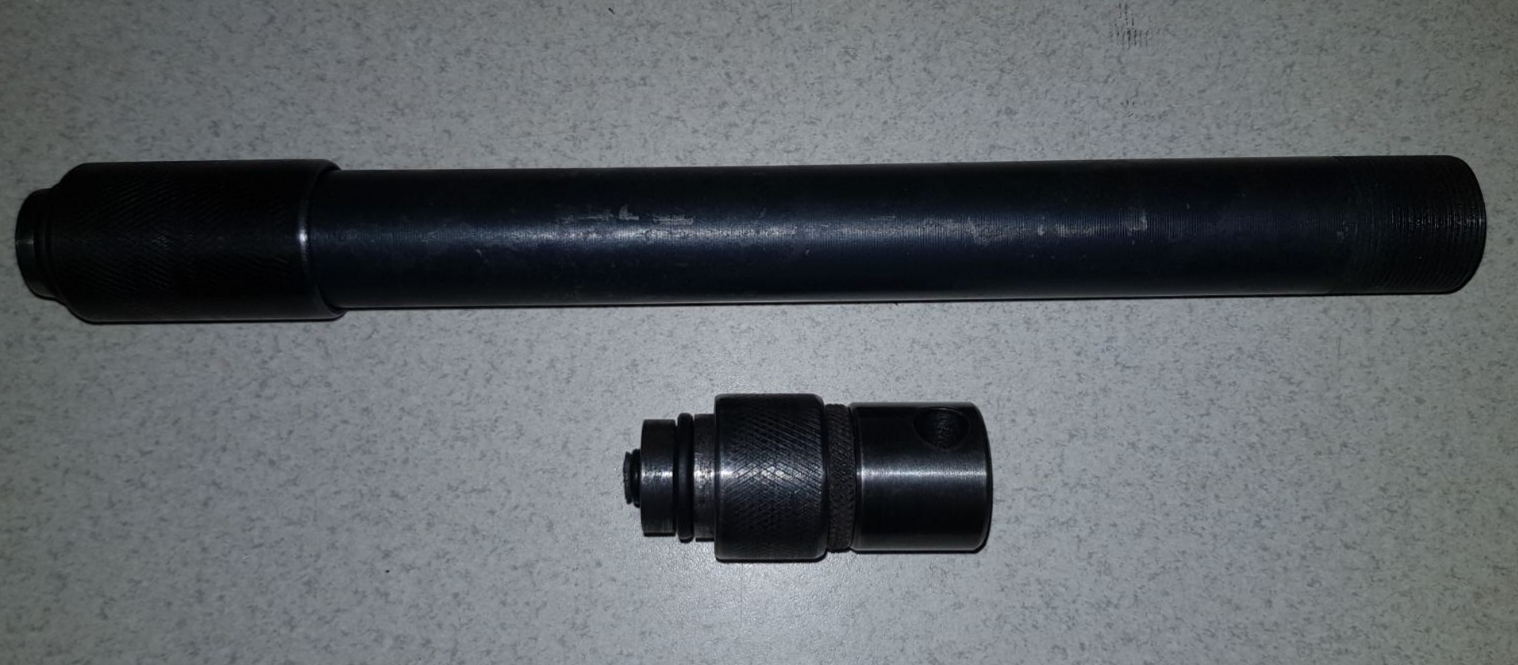 Предложу резервуар (удлинитель) на винтовку QB-78. Используется вместо штатной передней пробки. Позволяет заправлять винтовку воздухом (бюджетный перевод в PCP, не изменяя конструкции винтовки). На передней пробке резика присутствует порт под иглу 8мм. Лично я закачивал 150 атм. Больше с родным клапаном нет смысла, т.к. при бОльшем давлении в резике ударка уже не может пробить штатный клапан. На покрытии имеются следы эксплуатации.