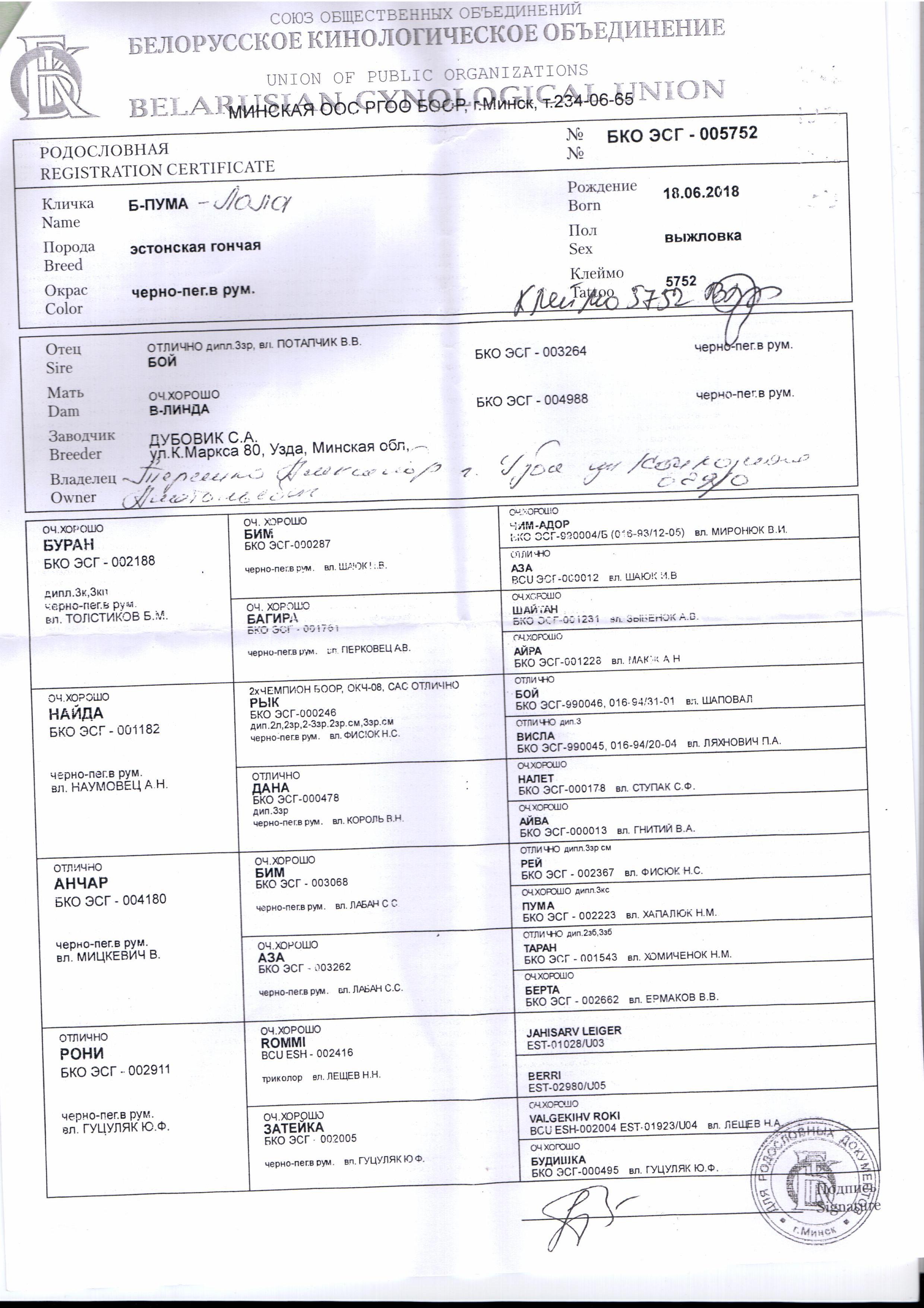 Судя по родословным, в основном метисов дают потомки этих 6ти собак, привезенных в Беларусь в разные года. В питомнике Valgekihv в начале 2000х разводили и финских гончих, и видать допустили специально или не случайно межпородную вязку. Вот через 20 лет и 5 поколений и выстреливают крови прадеда