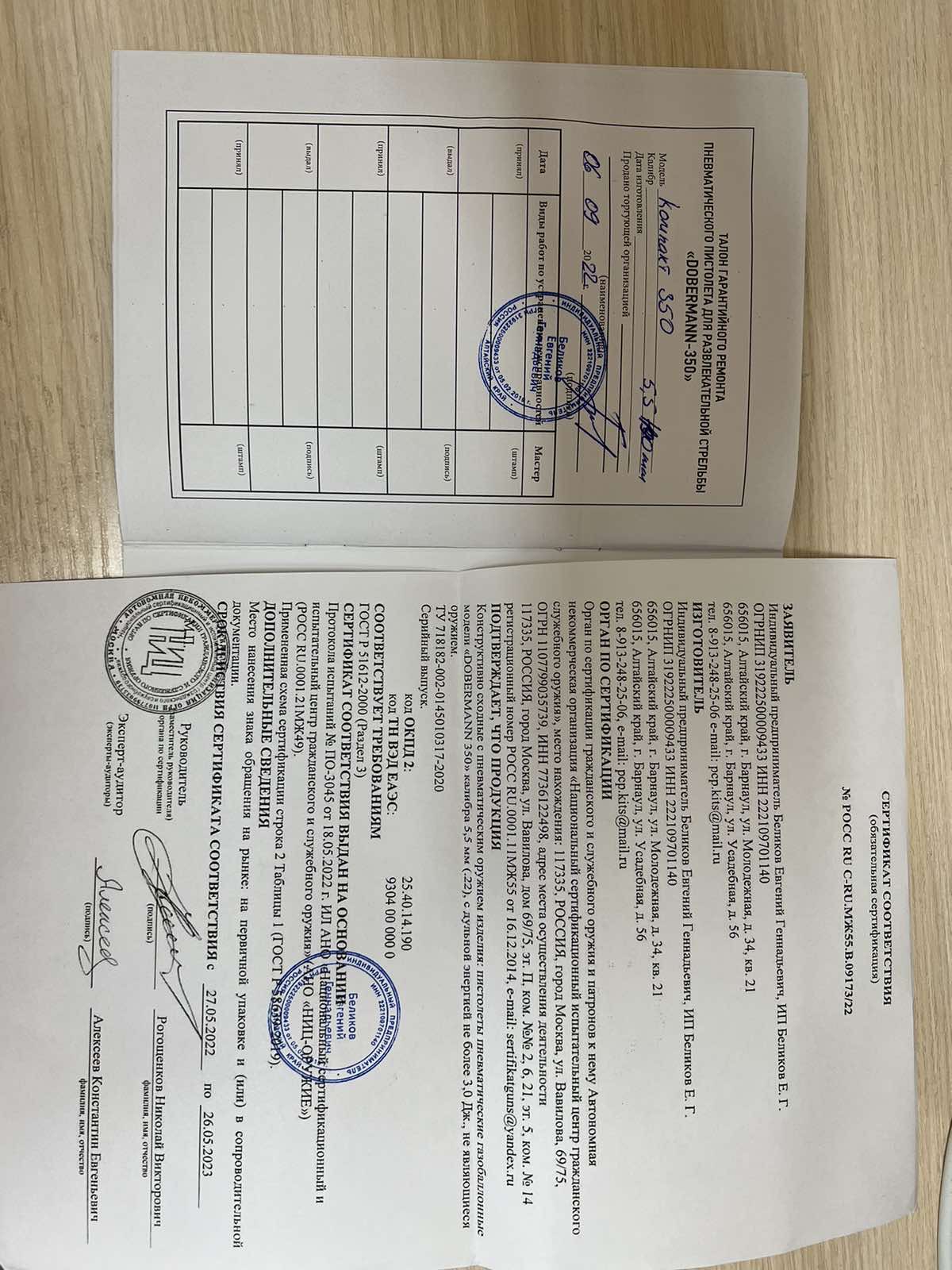 Цевьё и паспорт с сертификатом