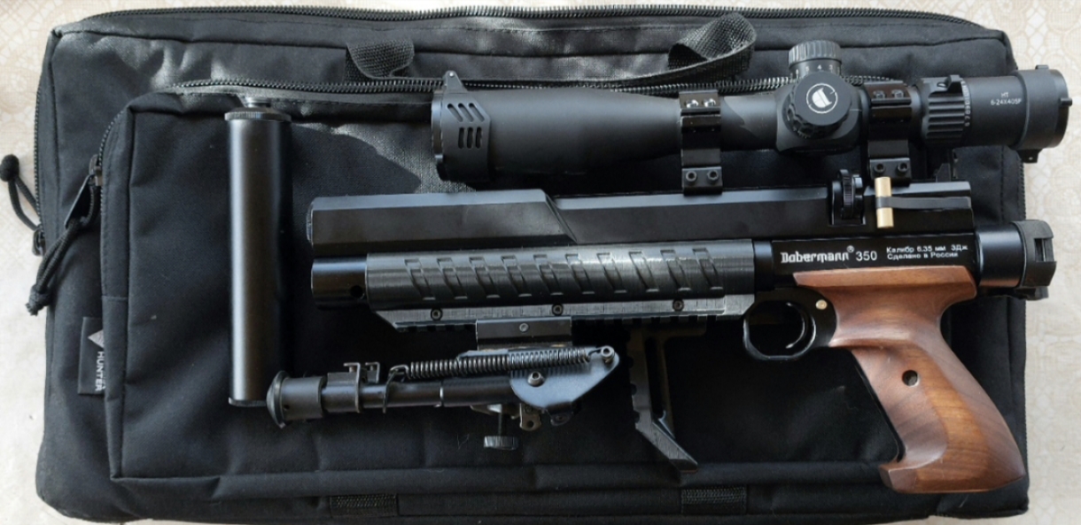 В продаже РСР пестокарабин Доберман эксцентрик 350, 6.35, стволик 250мм, прямоток.