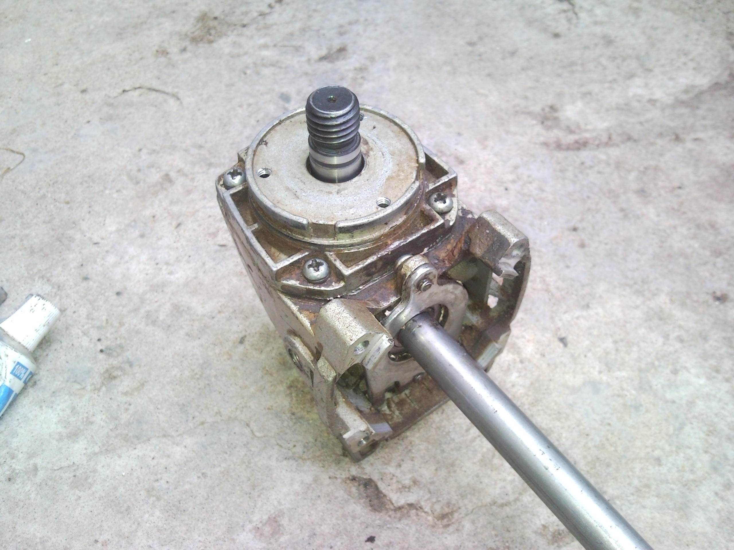 Взят редуктор от болгарки Элтос. Был поломан вал. Сделан от другой, проточен под наружный сальник с внутренним Ф14
