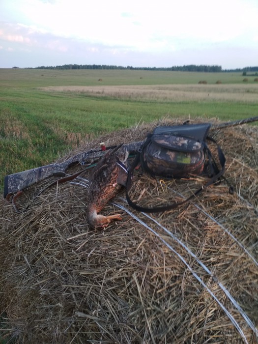 В субботу тоже решил открыться на рябчика. Неспешно бродил по лесу, манил. Как то совсем не отзываются. Ну думаю рано еще. Присел чаю попить только кружку налил, смотрю метрах в 30ти на елку в ветки птица села. Думал вообще сойка. Подождал минуту, снова тихонько поманил. А он по ветке начал ходить и вышел на чистое место. Рябчик! Передохнул немного, отошел от этого места метров на 300, снова начал манить. И тут отзываться начали сразу несколько рябчиков. Минут через 10 подошел один по земле на расстояние выстрела. Можно было еще охотится, отзывалось несколько штук, но не стал жадничать. Ну, а воскресение поехал охотиться в другой лесной массив сразу с края леса поднял рябчика. Решил его попробовать подманить. Минут через 15 пришел по земле проверить, кто на его территорию вторгся. Ну и фото: