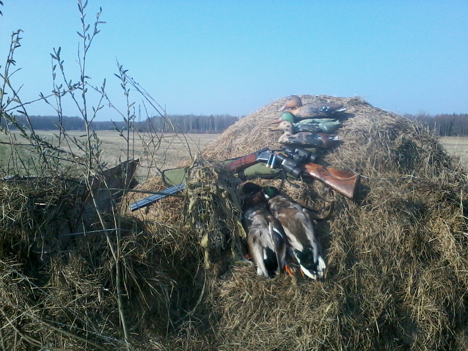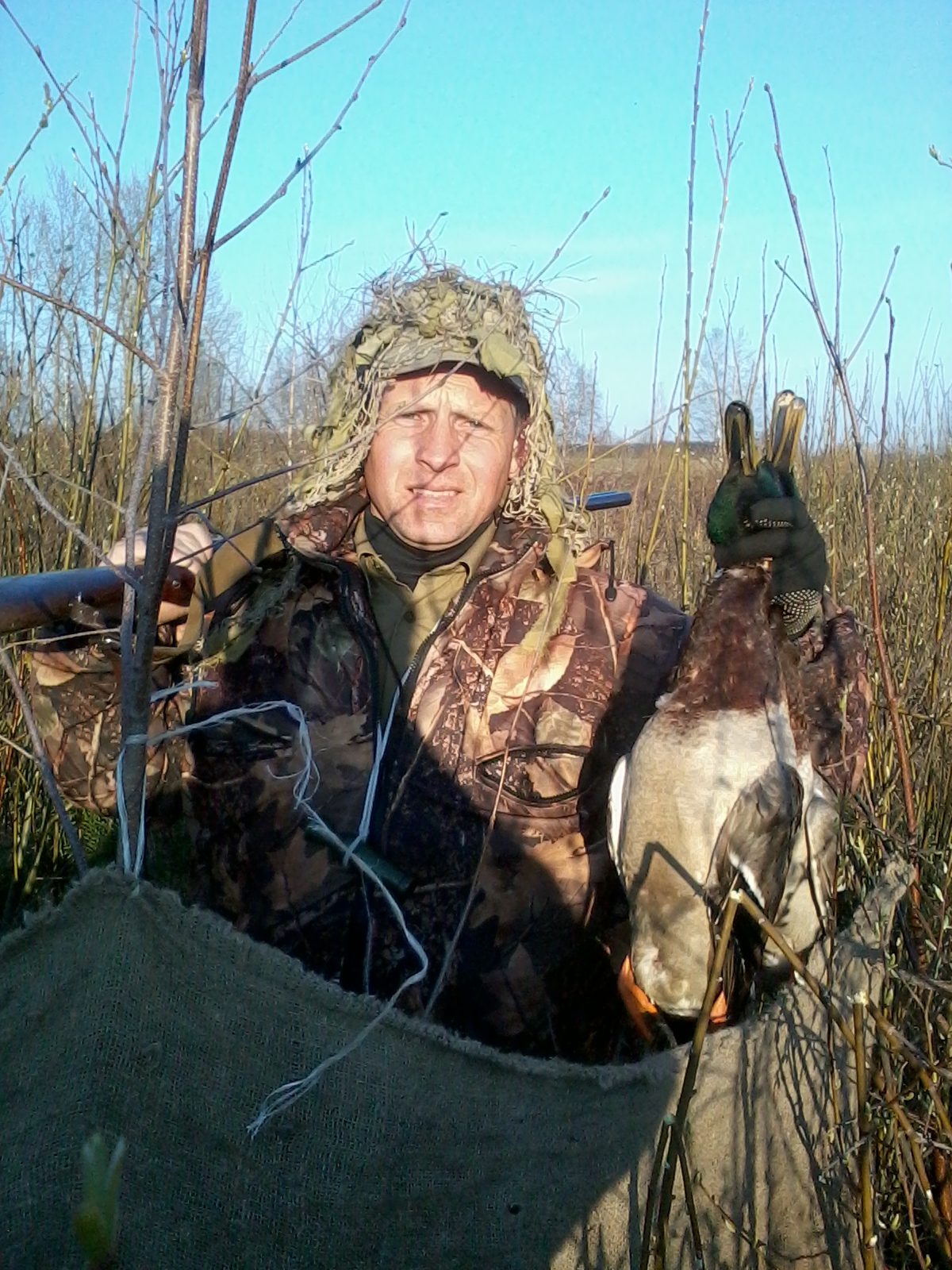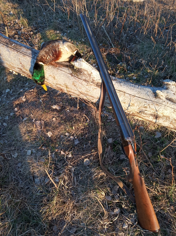В пятницу после работы начал я готовиться к предстоящей субботней вечёрке. Селезень, с последующим переходом на тягу. Открыл сейф. Рука потянулась к 54-ке, но тут я словно ощутил на себе взгляд с упрёком своего верного боевого мушкета под названием Иж-27. «Что ж ты, хозяин, с осени только эту «шмару» таскаешь с собой. А я??? Разве я когда-нибудь подводил тебя»? И действительно, понял я, что совсем забываю выгуливать свой проверенный временем бокфлинт. В общем, убедил он меня. И вот уже я в направлении угодий. 27-й готов к бою и ждёт своего часа в багажнике. 18.20. Я на месте. Подходя к уже обкатанной заводи, снова поднял крякву с новым кавалером. Хороший знак. Итак, я в импровизированном скрадке. Развалился себе, изредка покрякивая в маночек. Погодка способствует хорошему времяпровождению. Краем глаза замечаю в метрах 30 от себя бесшумно подошедшую ко мне козочку и позже присоединившегося к ней козлика. Пока любовался ими, чуть не потерял бдительность. Поворачиваю чердак влево. «!!!!!!! Грёбаный Экибастуз». В метрах 40 от меня и в 15, соответственно, от чучела прямо на бережку канавки комфортно устроился «хитрожопый селезнёк». Сидит себе и подозрительно косится на мою резиновую помощницу, которая в этот вечер «работала» без напарницы. Хорошо, что на голове у меня была чудо-шапка от «лешего», да камыши торчали вдоль всего сектора наблюдения селезня и не давали ему рисовать меня. Тут же «тьфу» на коз. Всё внимание на птицу, которая застыла словно статуэтка на альпийской горке. Решаю, что нужно как-то подобраться поближе. Но тут оказывается, что ветки, стасканные бобрами и служившие мне укрытием, начинают предательски трещать от малейших моих телодвижений. Точно земляной червь начинаю сокращать расстояние между маленьким «засранцем» и срезом стволов, рвущегося в драку Иж-27. Где-то с трассы донесётся рёв байка или большегруза, и я непременно проползаю несколько метров. Вот уже между нами остаётся около 15 метров. Стена камышей, прикрывающая мою дерзкую атаку – не проблема для снаряжённого своими руками «самокрута» с № 6. Гремит выстрел. Чисто битый «свадебный генерал» скатывается с края канавки в воду и оказывается там «к верху лапками», что подтверждается фото-отчётом. По берёзовому бревну я форсировал канаву и с помощью корявой ветки вытащил соколика на сушу. Дежурный надрезик ножиком на пузе. «Вуаля»! Мяско чистенькое. Сбор и вперёд на тягу. Тут меня порадовало, что тяга началась в 20.40, а не после 21.00, как я предполагал. Первого слегка прозевал, посему стрелять не стал, ибо куличёк мог упасть в непролазный кустарник. На этой прекрасной поляне в своё время я для себя методом проб и ошибок определил позицию для стрельбы, и теперь практически вся тяга проходит буквально у меня над головой. Через пару минут налетел второй. Выстрел. Готов. Пока подбирал – следующий, да прямо на меня. В нижнем стволе остался нецелованный патрон. «ОГОНЬ !» И этот чисто бит. Мой «ижевский товарищ» словно от обиды на меня, давал понять: «Цели не достигаются, Андрюха, а поражаются». Ну и под занавес оставалось мне только «обосраться». Так и случилось. Довольно низкий налёт прямо в штык. Я даже подумал: «Не стриж ли это какой-нибудь сюда в лес каким-то чудом забрался»? Выстрел. Мимо. Высший пилотаж. Недоумевающий мой взгляд вслед уходящей птице. Ну, значит на сегодня достаточно. Охота без со