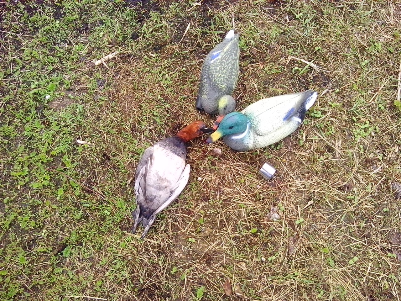 , грешу не на свои "кривые" ручки, а на погоду. В субботу с утра заморозки были, мелкие лужи льдом покрылись, а на сажалке где у меня скрадок, пар с воды валил, все как в тумане было. Было пару налетов со спины. Шли парочками, молча, ни звука не издавали, только и слышал свист крыльев когда над головой проносились. Кстати, оказалось что за пригорком, примерно в сотне метров от моего скрядка ток тетеревов находится, я их по темноте шуганул когда на свое место шел, но затем, где то через часик ток возобновился. Зрелище скажу я вам, впечатляющее