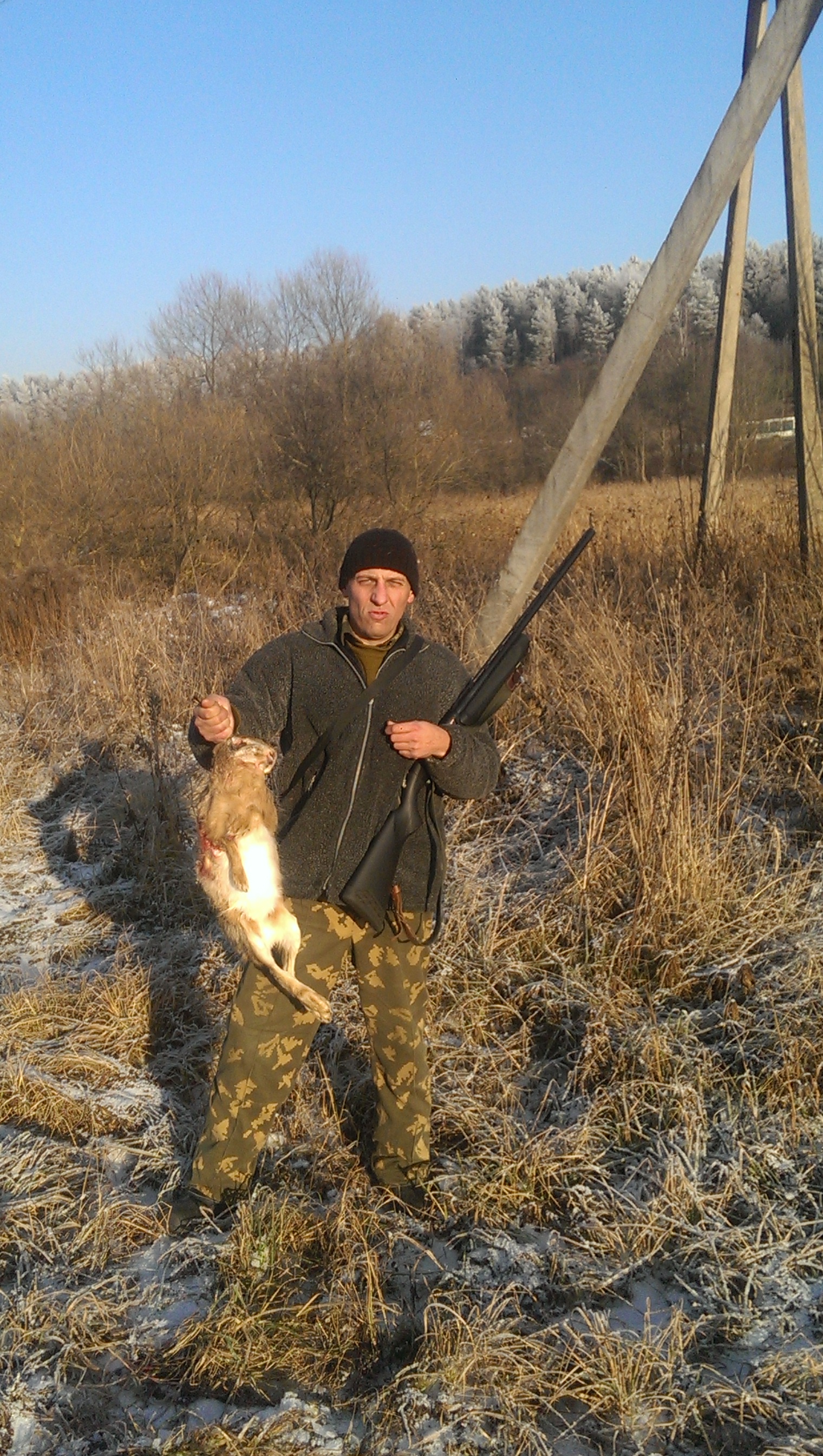 В общем после обеда решил так сказать жирок разогнать выехал в угодья ну и пошол трапить по маленьку ,где ни где скудно снег лежит Амур бегает как увижу след зайца сердце из груди готово выпрыгнуть (эмоции) . очередная зелёнка(озимые) выходим из машины и идём на круг ,зелёнка метров триста с лева думаю дойду до конавы и в сторону озимых краем , не дошёл чет я отвлёкся поворачиваю голову в сторону где бегал собакен и офигеваю ........... уже метров около ста спереди заяц а за ним мой Амур