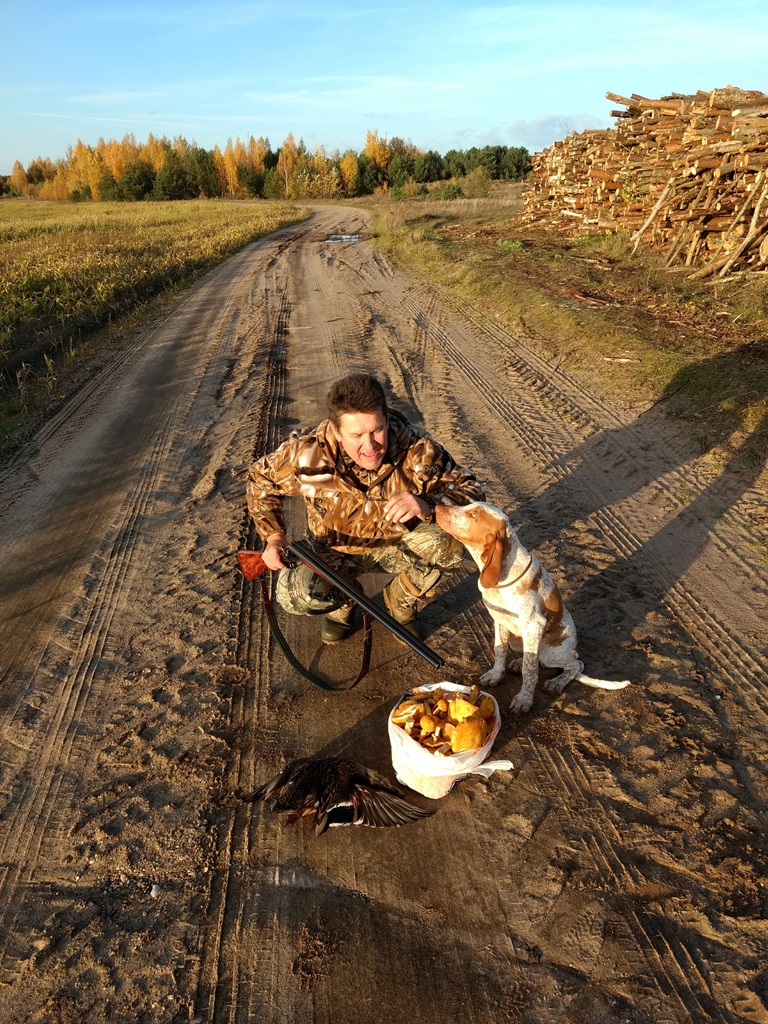 За все прошедшие выходные, к сожалению только вчера на вечерку и удалось выбраться. Так как лёт в последнее время мягко сказать слабенький, думаю нынешняя погода вносит свои коррективы, поэтому сразу же пошел топтать лужи да каналы. За три часа ходьбы поднял много кого, но только не утку, уже даже начал понемногу в депрессию впадать. Но, как обычно водится, в самый неожиданный момент на слиянии двух каналов поднял парочку. Первым выстрелом, рефлекторно, взял селезня, а вторым по уходящей утке благополучно смазал. Когда адреналин немного прошёл, возник риторический вопрос: "Как достать добычу?" Я на одном берегу, он на противоположном, воды немерено, а переправы какой либо по близости нет. Почесав "репу" потопал вдоль, огибая все притоки да завалы. Уверенности что найду селезня там где он упал не было, но и бросать птицу не хотелось. В итоге, часа через полтора добрался к месту предполагаемого падения трофея, и ещё минут пятнадцать потратил на поиски его по тростнику, и ура! Я с добычей!