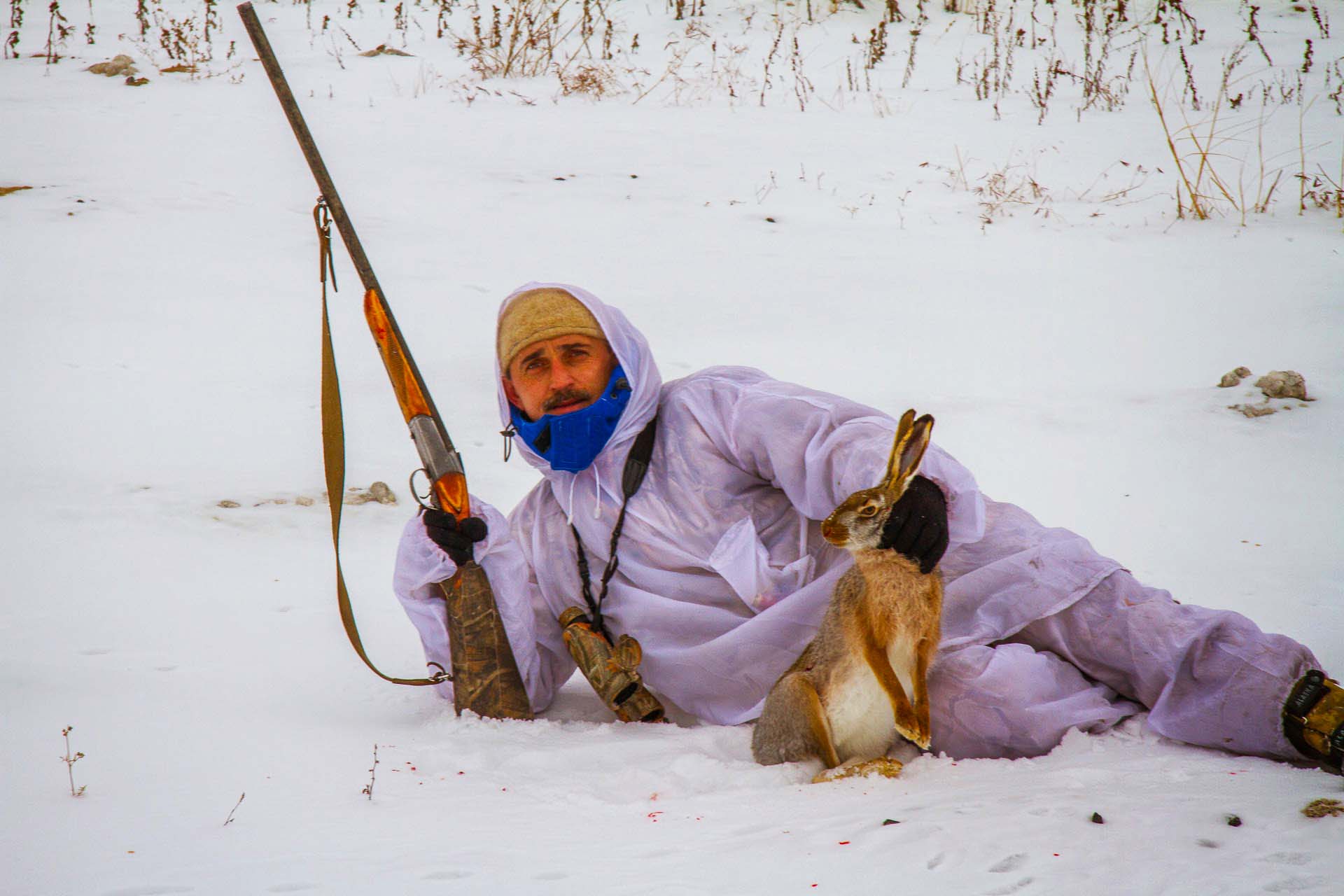 У меня попадаются какие-то "неправильные" зайцы. Сегодня по свежему снежку решил потропить. Все зайцы (4шт) ушли на лёжку в лес. Последнего (от досады) пошёл "тропить" по лесу, в надежде, что всвязи с оттепелью поднимется из-под ног (появится возможность выстрелить "на коротке"). И вытропил русачину, но паразит ушуршал по молодому ельнику. Стрелял "в ту сторону", на авось. Ага - фигульки! Выбежал ушастик на поле, и, дав гипербалу, обратно в лес. Моих сил больше не было, пот тёк ручьём, морда поцарапана ветвями, ...и я отправился зондировать куничьи следы.