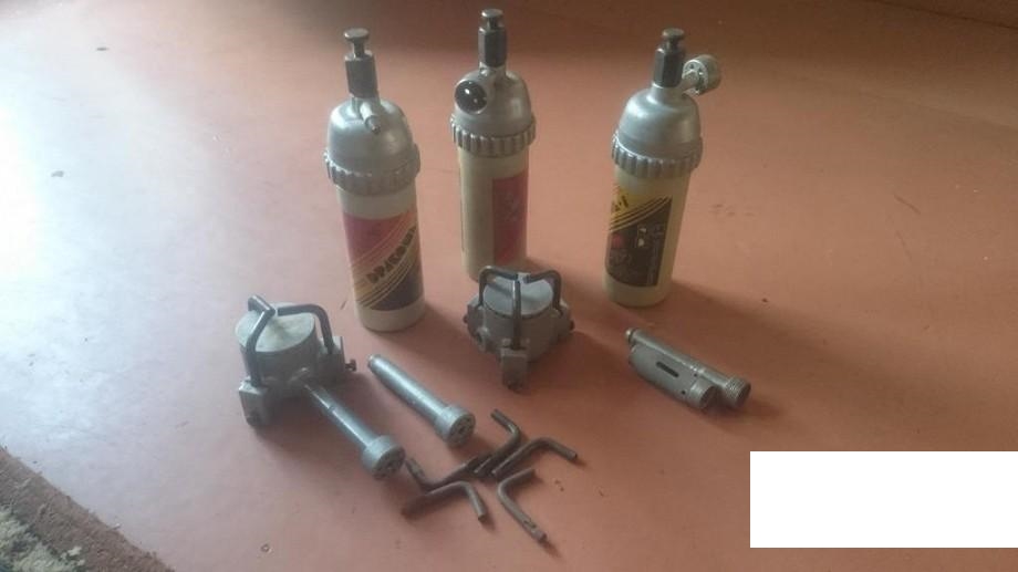 Легкая газовая плитка + горелка под резьбовой баллон. В качестве расходных баллонов подходят газовые баллончики для зарядки зажигалок аэрозольного типа 180 гр.
