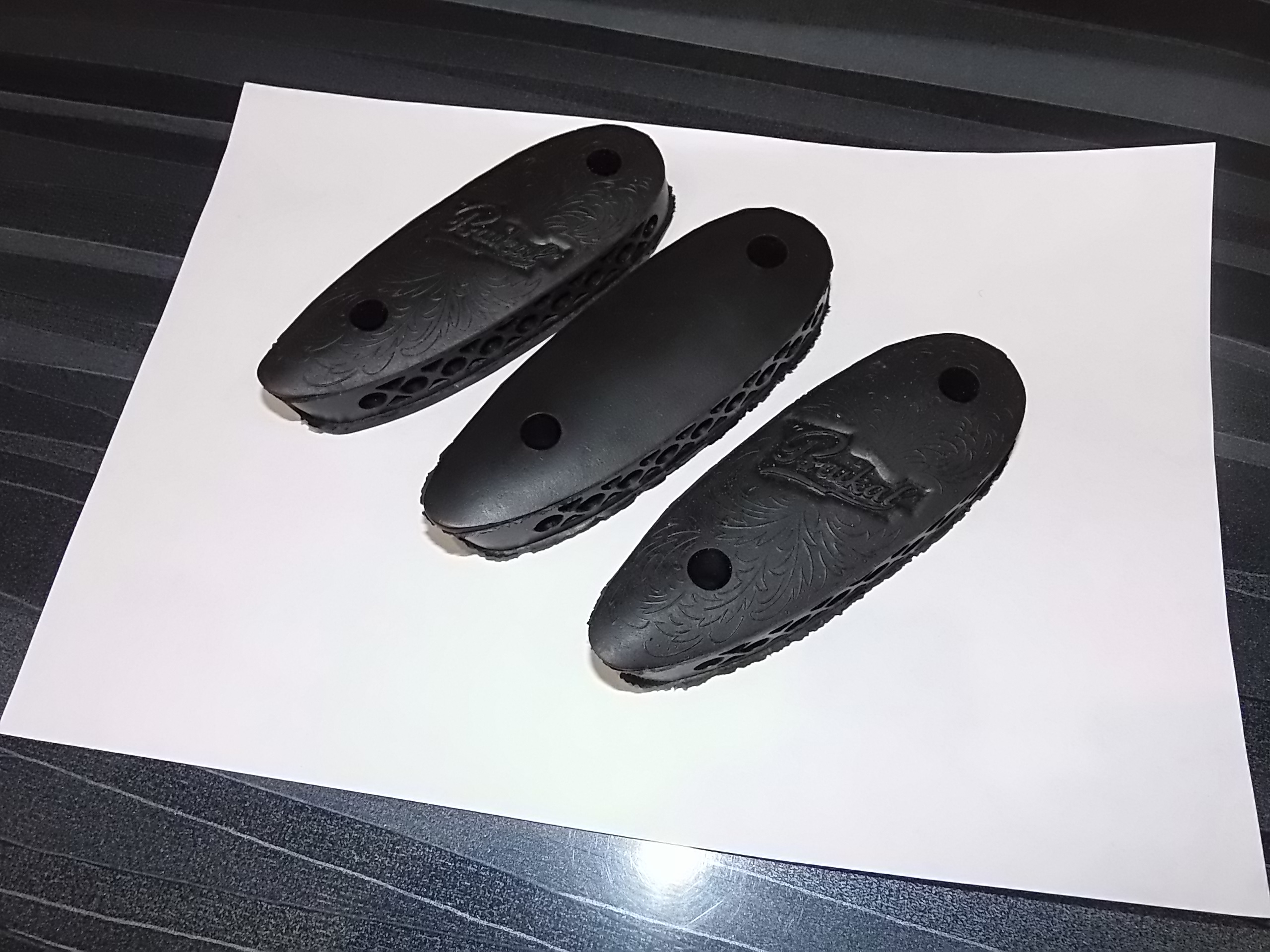 Фотка для хозяина темы.Пока добрался до продавца,осталось только три штуки.Хорошо что попросил его оставить имевшиеся два с логотипом.Один "лысый",но на мой взгляд ничем не хуже.В чём то даже и лучше,особенно если делать что-то не для Ижевского.У меня стоял такой "побритый" на недавно проданном карабинчике из Хатсан 25.И был точно в тему-лучше безымянный,чем на турке писал бы "Байкал".В общем забрал на риск все три.Если не захочется брать Вам "лысый",придётся искать на него владельца.Стоимость каждого-100 000 рублей.Ну и конечно немножко нужно за пересылку...Все подробности отправляю в ЛС,а фото затыльников вот: