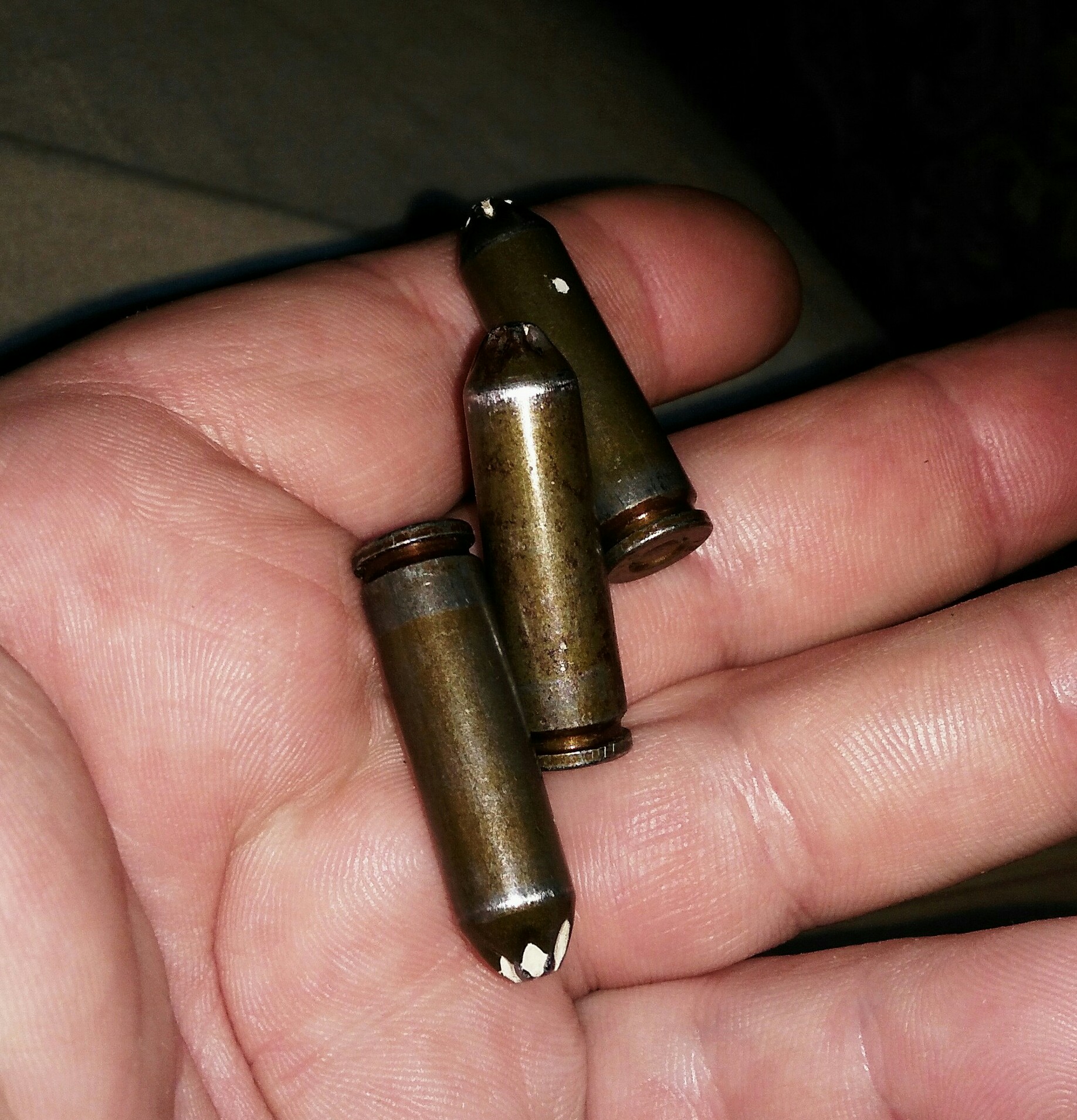 Они выглядят как заплющенные вверху, и без пули,естественно, патроны 5,45, АК -74.....