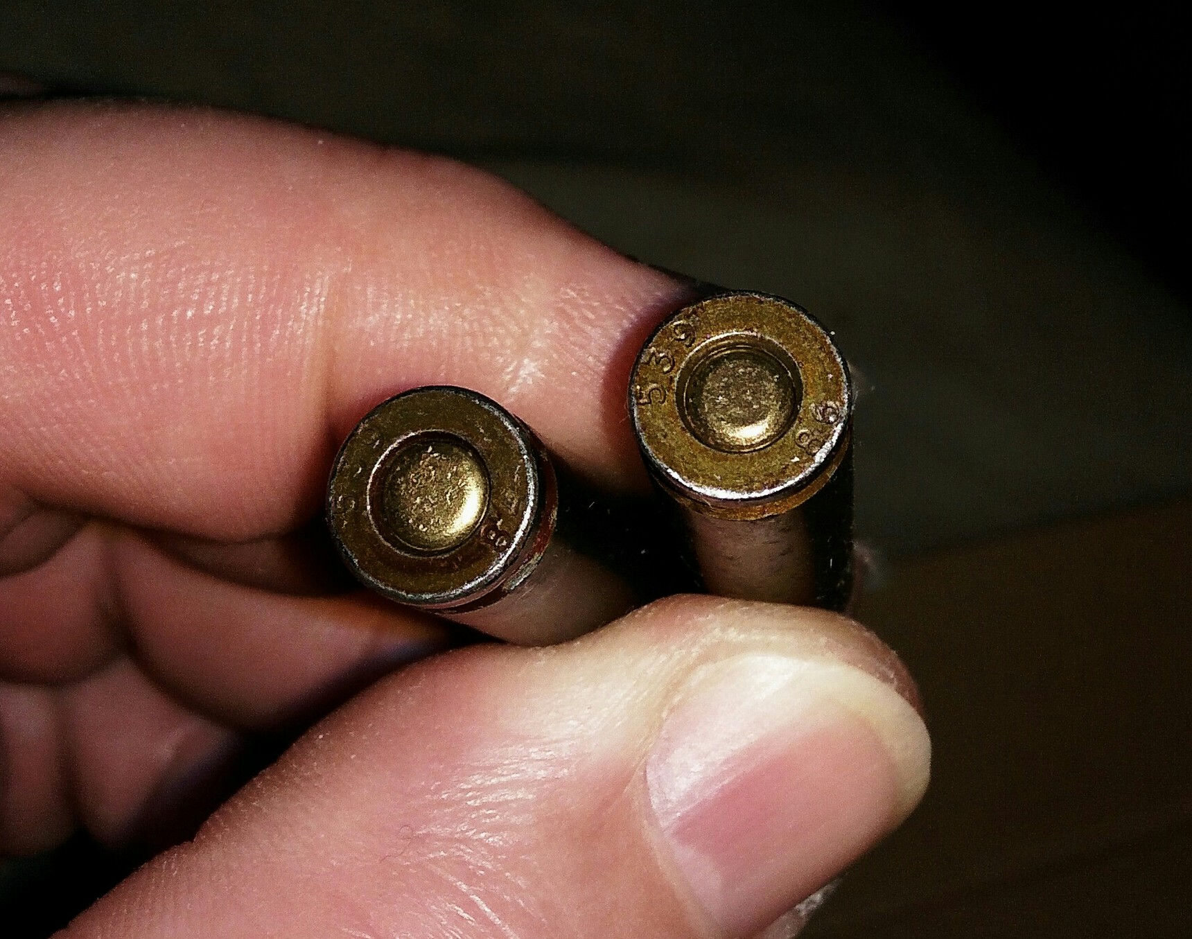 Они выглядят как заплющенные вверху, и без пули,естественно, патроны 5,45, АК -74.....