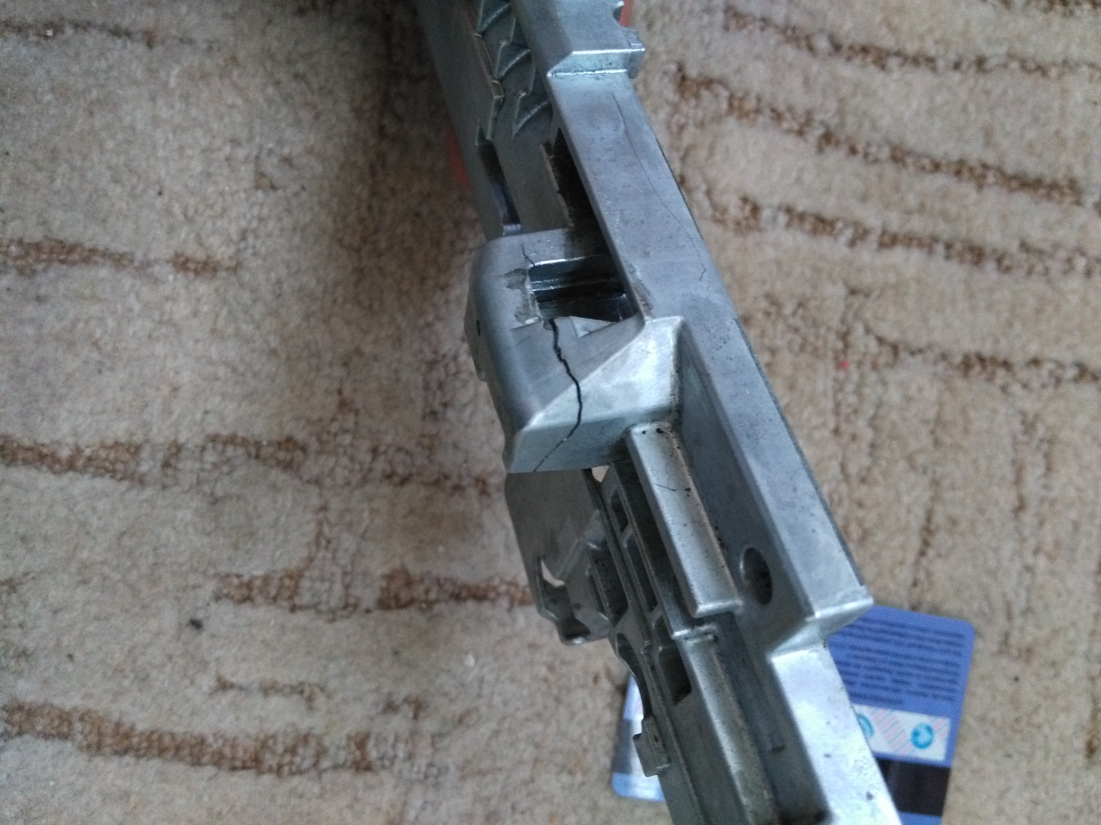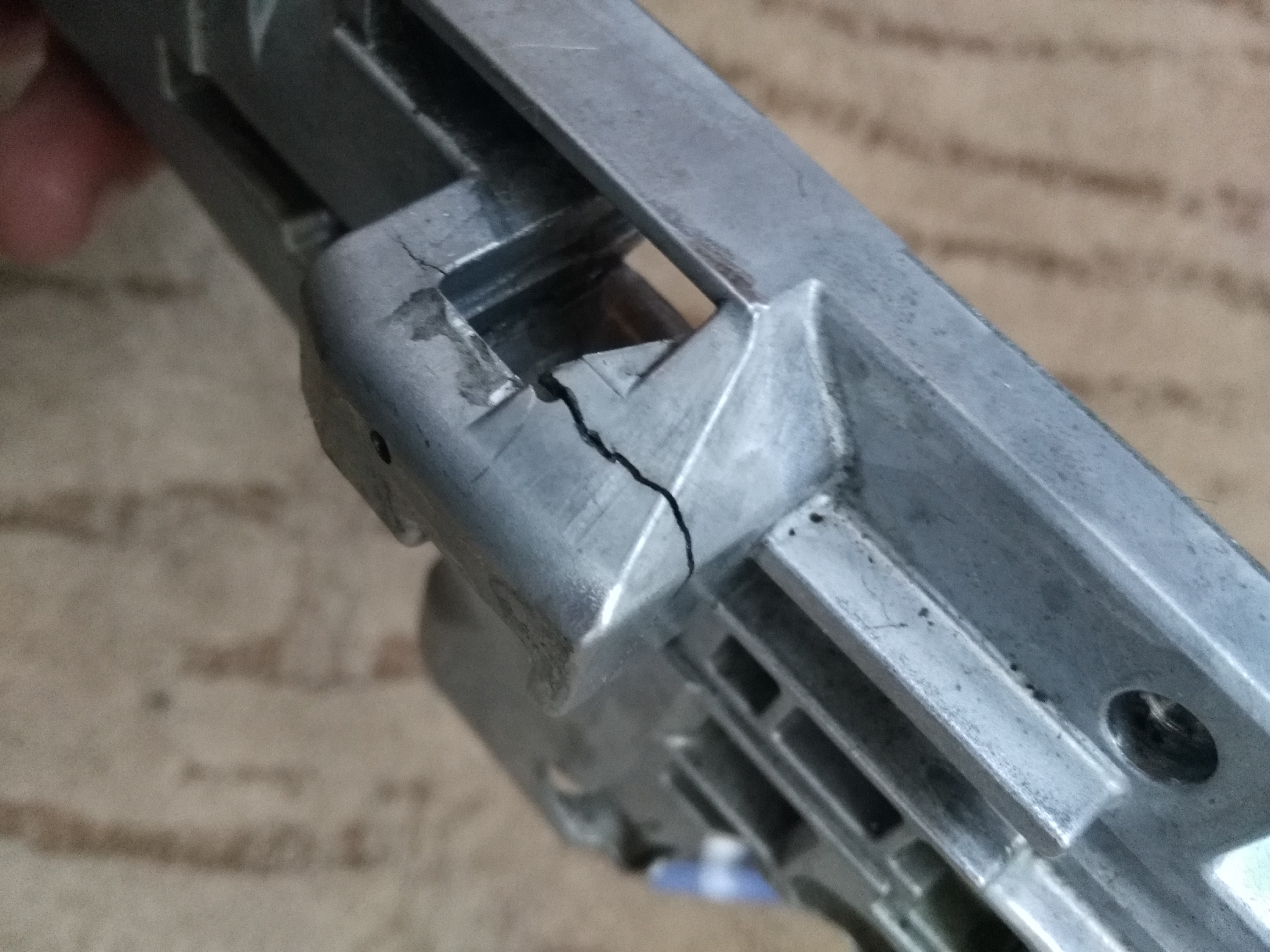 Лопнула то ли силуминовая, то ли еще из какого алюм.сплава коробка пневматической винтовки . Винтовка не мощная - 3 Дж - но все равно - ТРЕЩИНА.