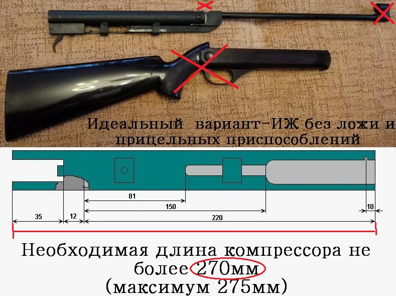 НО! Необходима винтовка с длиной компрессора не более 270мм!!! Ну максимум 275мм.