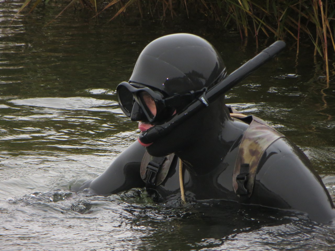 Скажу сразу, что надевать его и снимать нужно аккуратно, ногти должны быть пострижены, и срывать его с себя тоже нельзя! Всё делать размеренно и не спеша. В этом костюме я полазил в камыше и понырял как следует, считаю его крепким и очень тёплым, я остался доволен выбором!