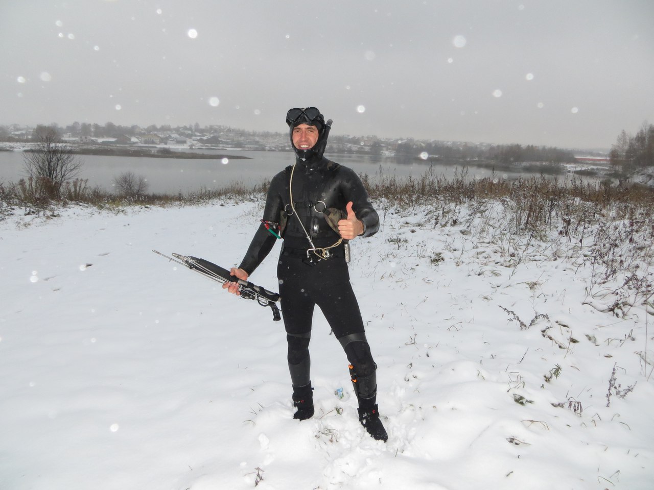 Что у всех происходит с лицом когда на улице минус 20, нужно помнить что температура воды 2-3 градуса, на глубине теплее, соответственно и репа не так мерзнет))) Плохо когда вода под шлем протекает, к ушам или к голове тогда совсем другая медодия)