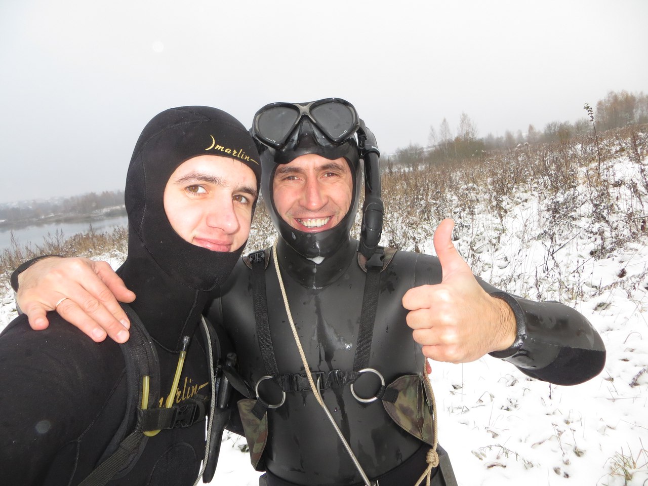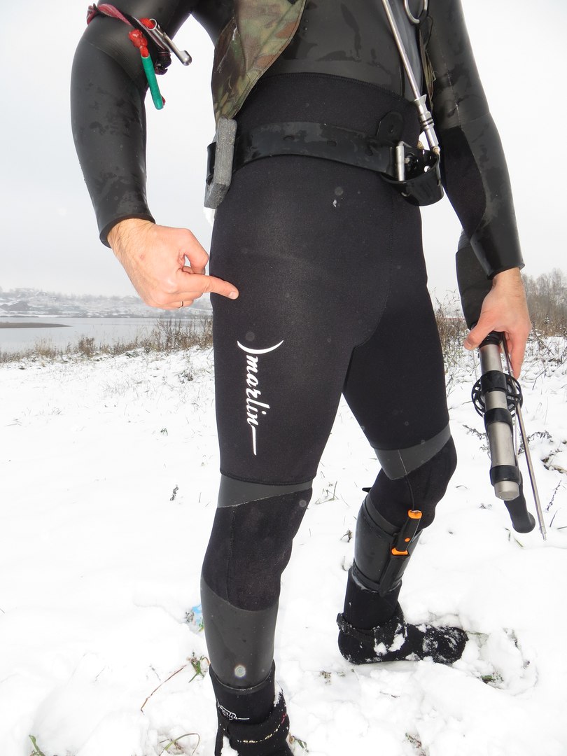 Гидрокостюм МАРЛИН ЗЕВС....Не знаю, как у вас, а у нас началась зима. Вспоминая прежние годы и анализируя я понимаю, что с климатом что-то не то. Изменился не только климат, но и водоёмы, но об этом в процессе. В этой статье я хочу рассказать о тестах нового костюма Марлин Зевс. Вода в водоёмах охлаждена до предела, и пока она жидкая – хочется нырять с комфортом без ущерба здоровью. Нырять конечно можно и в пятёрке -20 минут, но удовольствие - это когда долго… До Зевса из зимних костюмов у меня были разные. Как правило, они были с тканью поверх неопрена. Последние годы я присматривался к зимним костюмам 9-10 мм с голым неопреном снаружи, но побаивался брать. Мне казалось, что такой костюм порвётся в первую же охоту. Дело в том, что на первых этапах своей охотничьей практики подводный охотник треплет на себе костюм об что только получается (разумеется, нехотя). А подводный охотник с некоторым стажем уже более внимательно и аккуратно двигается в толще воды, редко забирается в коряги так, чтоб касаться о них телом. Следовательно, и костюм и снаряжение в общем служит ему куда дольше, чем начинающим охотникам.