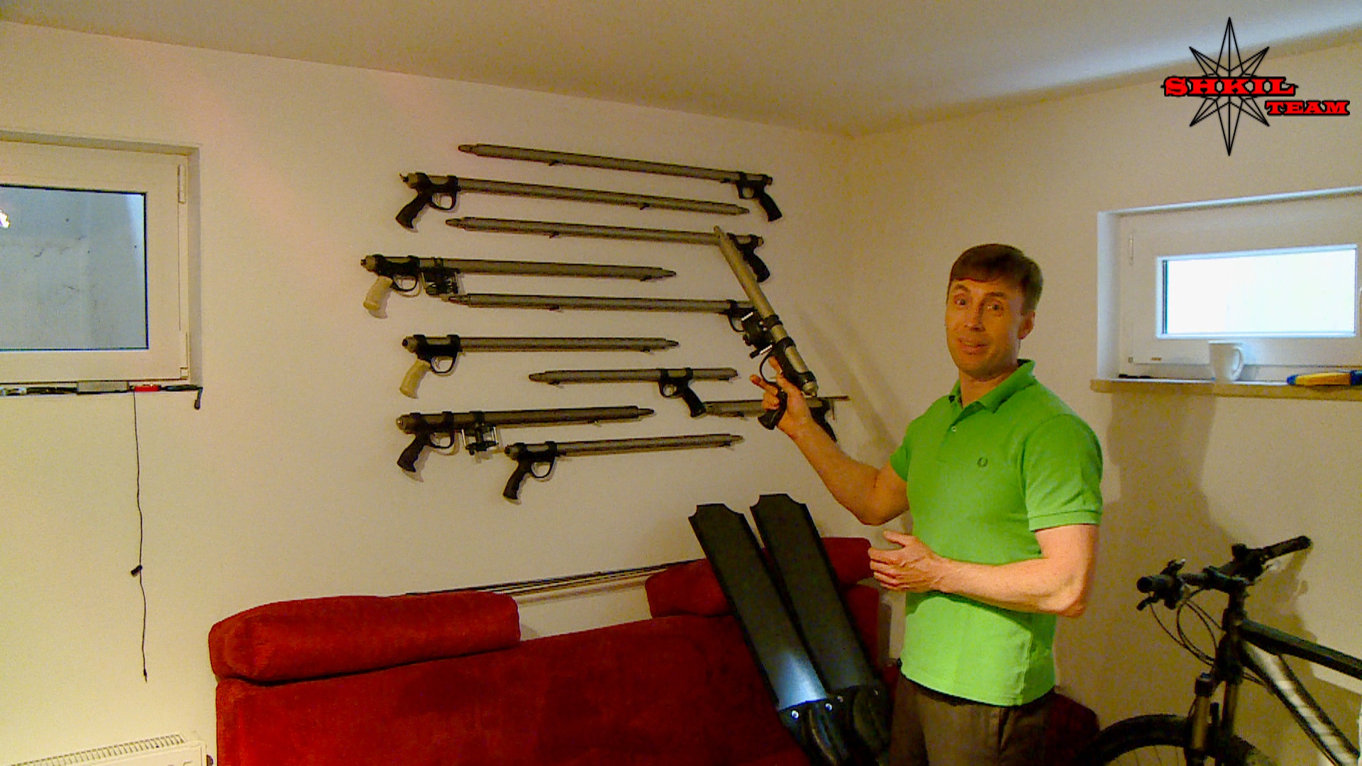 Прошёл ровно год с того момента, как я взял в руки одно из его ружей. Это титановый клапанник 55-60см. С первого взгляда он мне показался тяжёлым, но качественным изделием. Первые несколько дней я «щупал» и присматривался к этому ружью, присматривался к сборке и материалам – и мне это нравилось. Гарпун и его система, ресивер, ручка, надульник и катушка бросались в глаза в первую очередь. Ручка в голой руке мне показалась мелковатой, и немного смутил линесброс. Чего гадать да думать: я оснастил ружьё и двинул на водоём – это была уже зима. В первые минуты подтвердилось моё опасение по поводу веса. Рука уставала, пришлось решать этот вопрос компенсатором плавучести, ружьё стало невесомым, ура! Далее при зарядке впервые пришлось наматывать линь на странный, не знакомый мне линесброс. По прошествии некоторого времени я перестал замечать это и всё стало наматываться на автоматизме. Уже на следующих моделях мастер установил иной линесброс, более удобный. Хотя я уже и не знаю, какой из них мне нравится больше. Так как это была зима, естественно я охотился в толстых трёхпалых рукавицах. Курковое пространство отличное, но сама рукоять мелковатая, честно говоря, рука немного уставала от того, что приходилось излишне сдавливать её для того, чтобы ружьё сидело в руках жёстко и надёжно. Теперь эту проблема решена у новых ружей – Олег сменил ручки своих ружей на более удобные и красивые. Пожалуй, больше замечаний у меня к этому ружью не было.