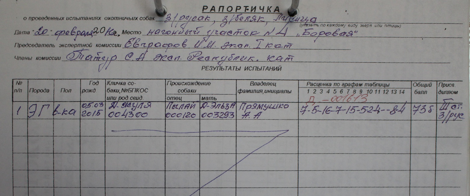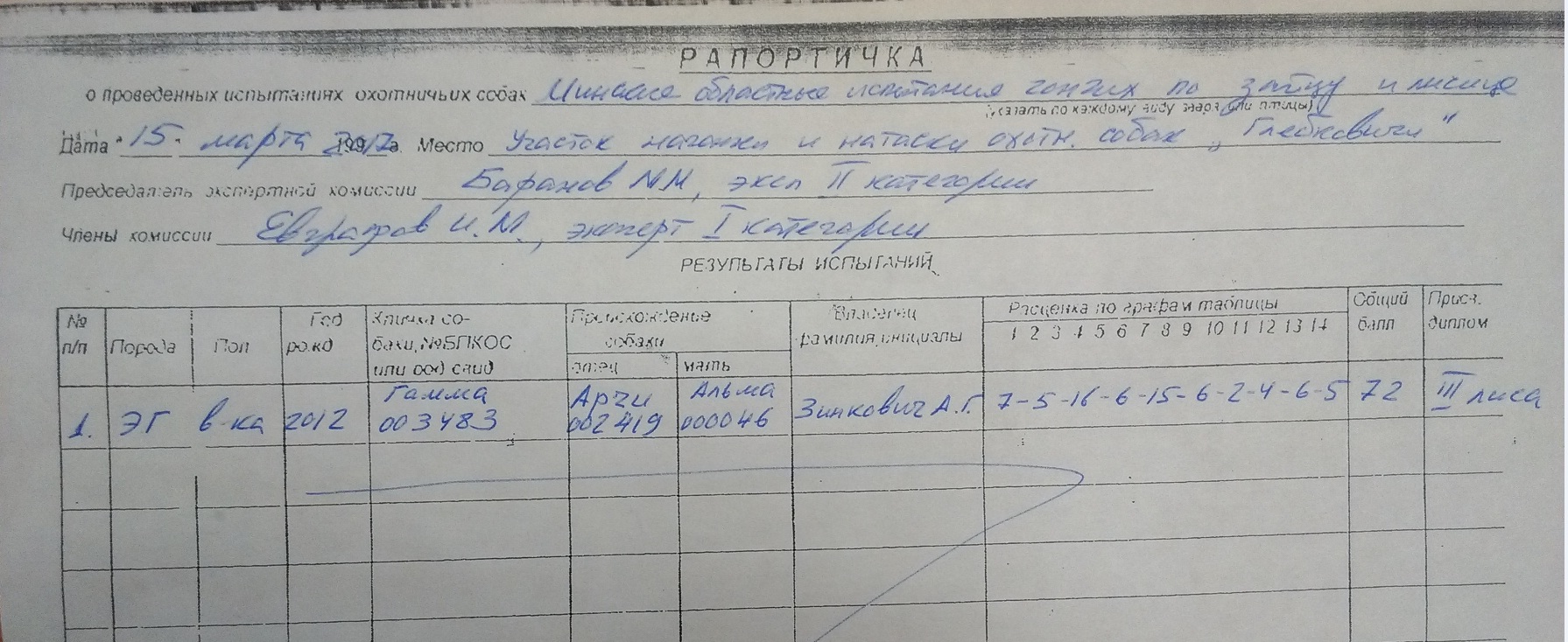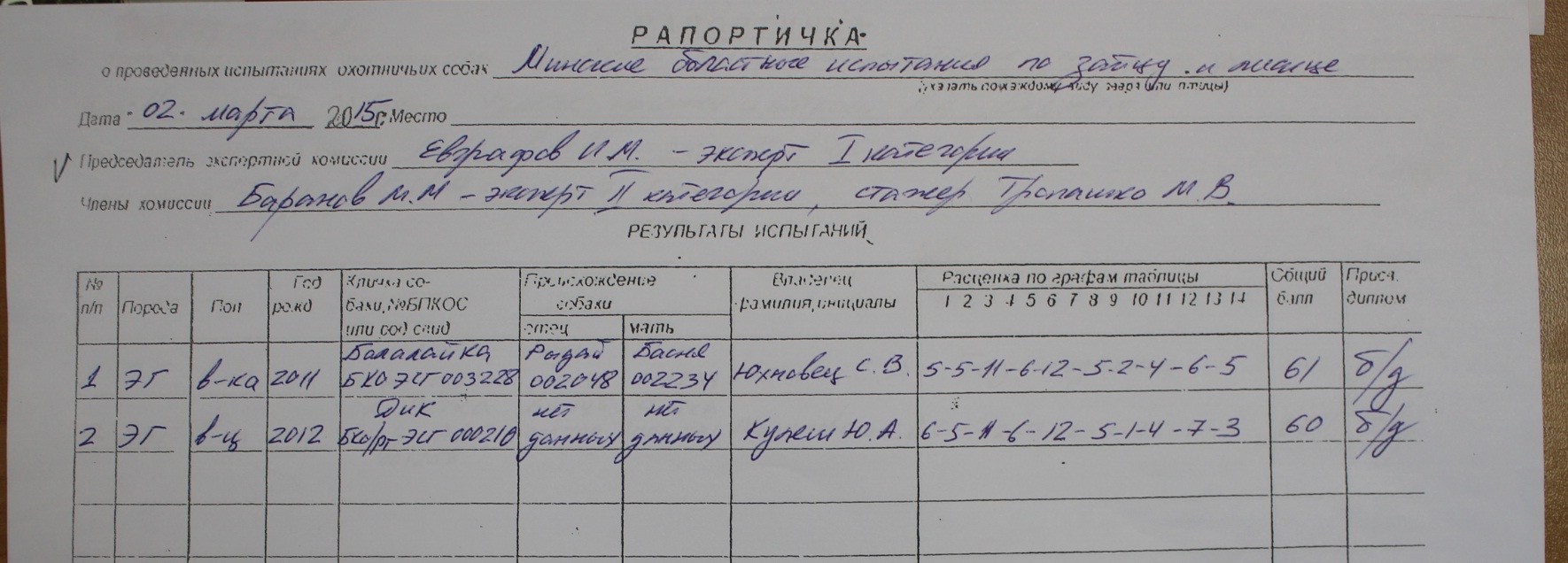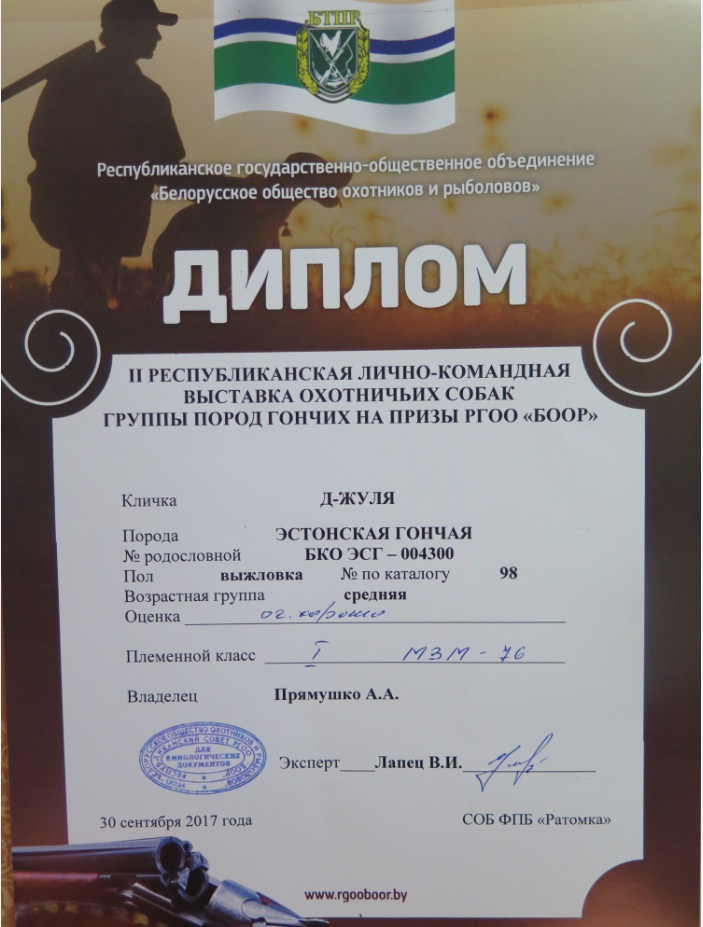 Re: Родословные дипломированных выжловок ЭГ в РБ