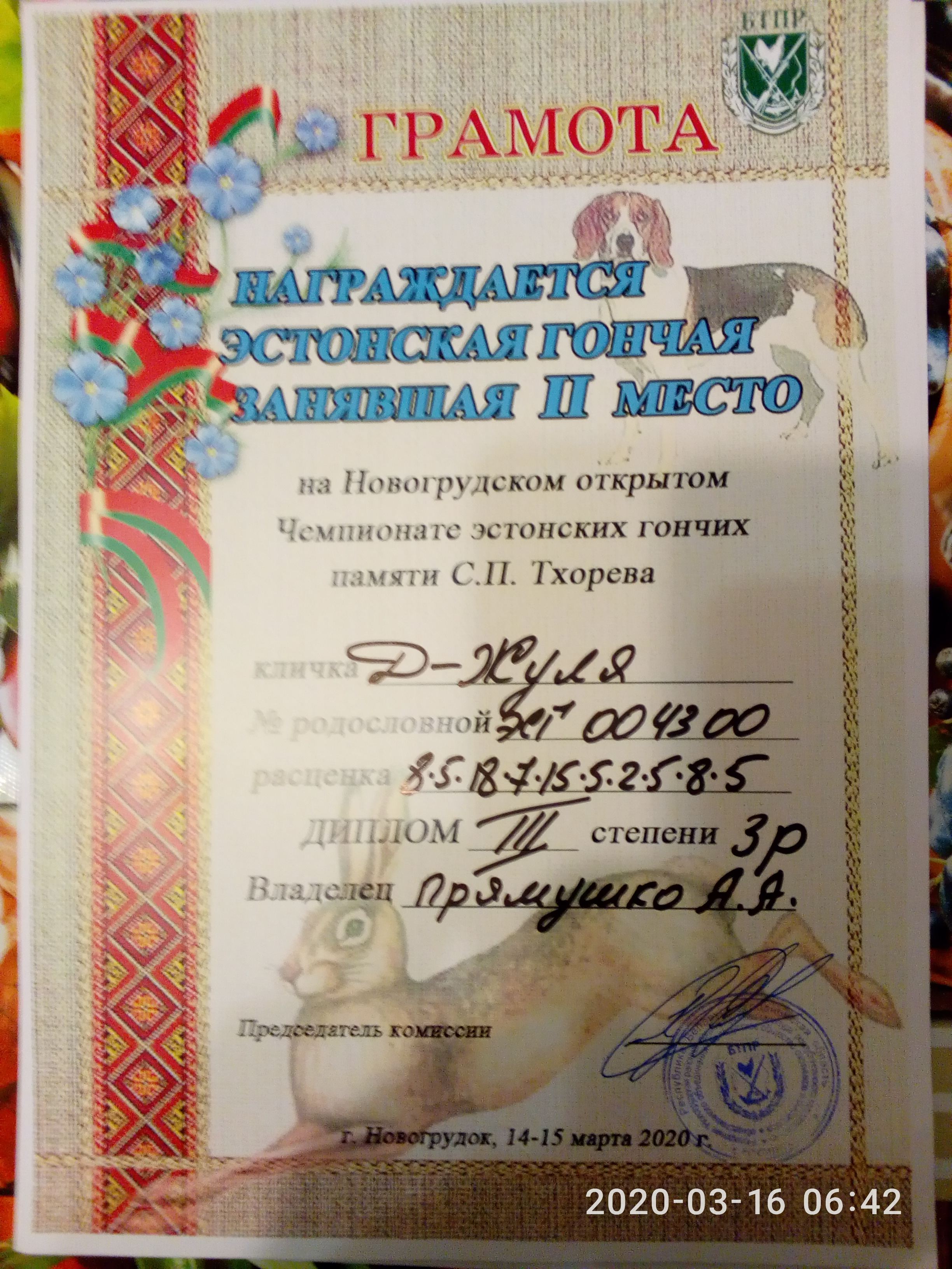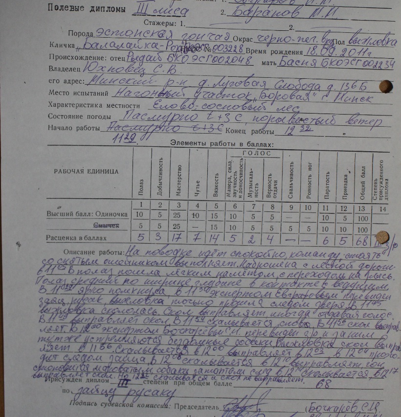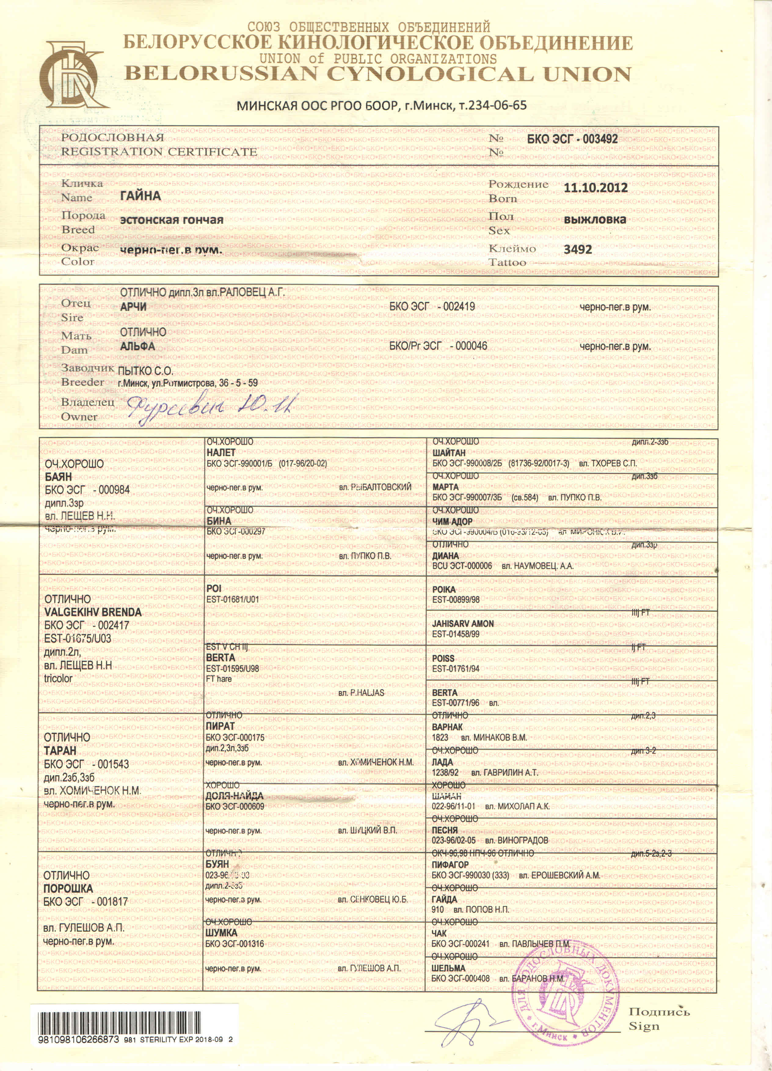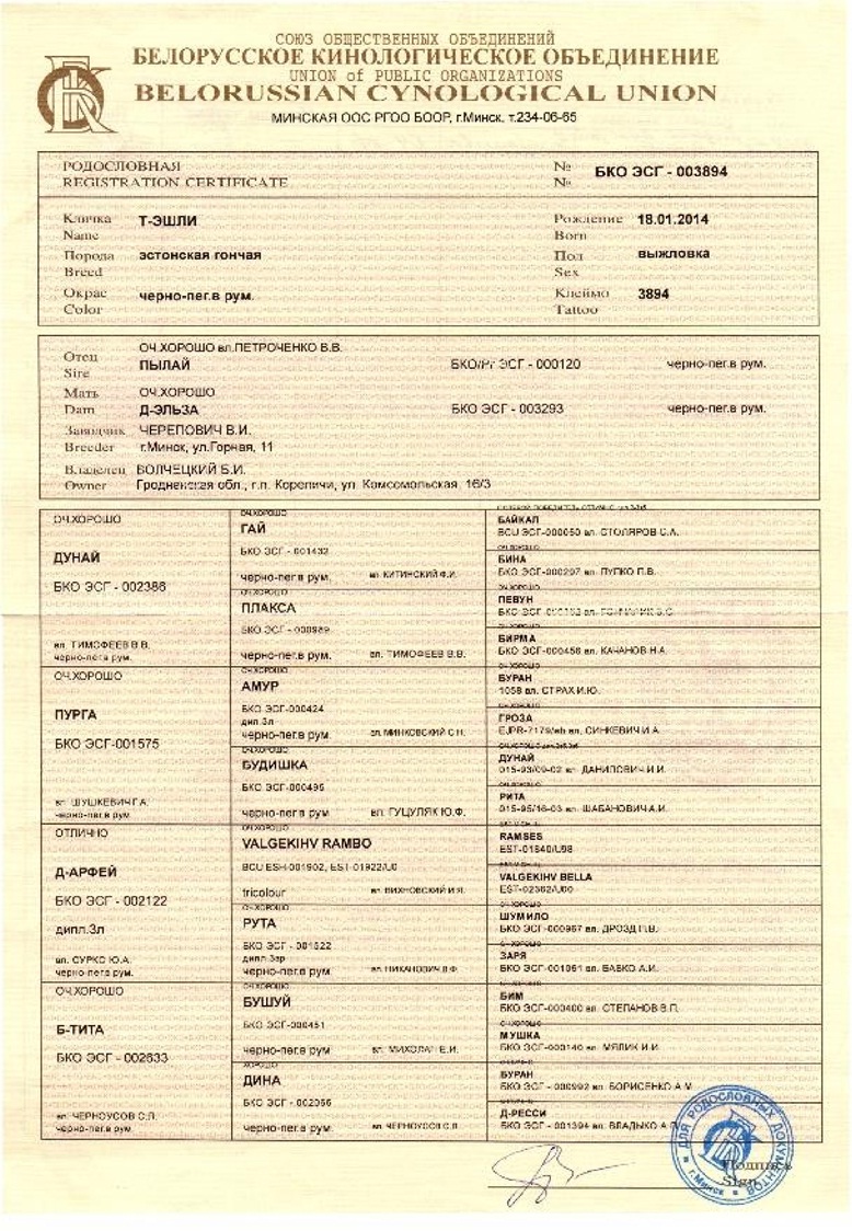 Re: Родословные дипломированных выжловок ЭГ в РБ